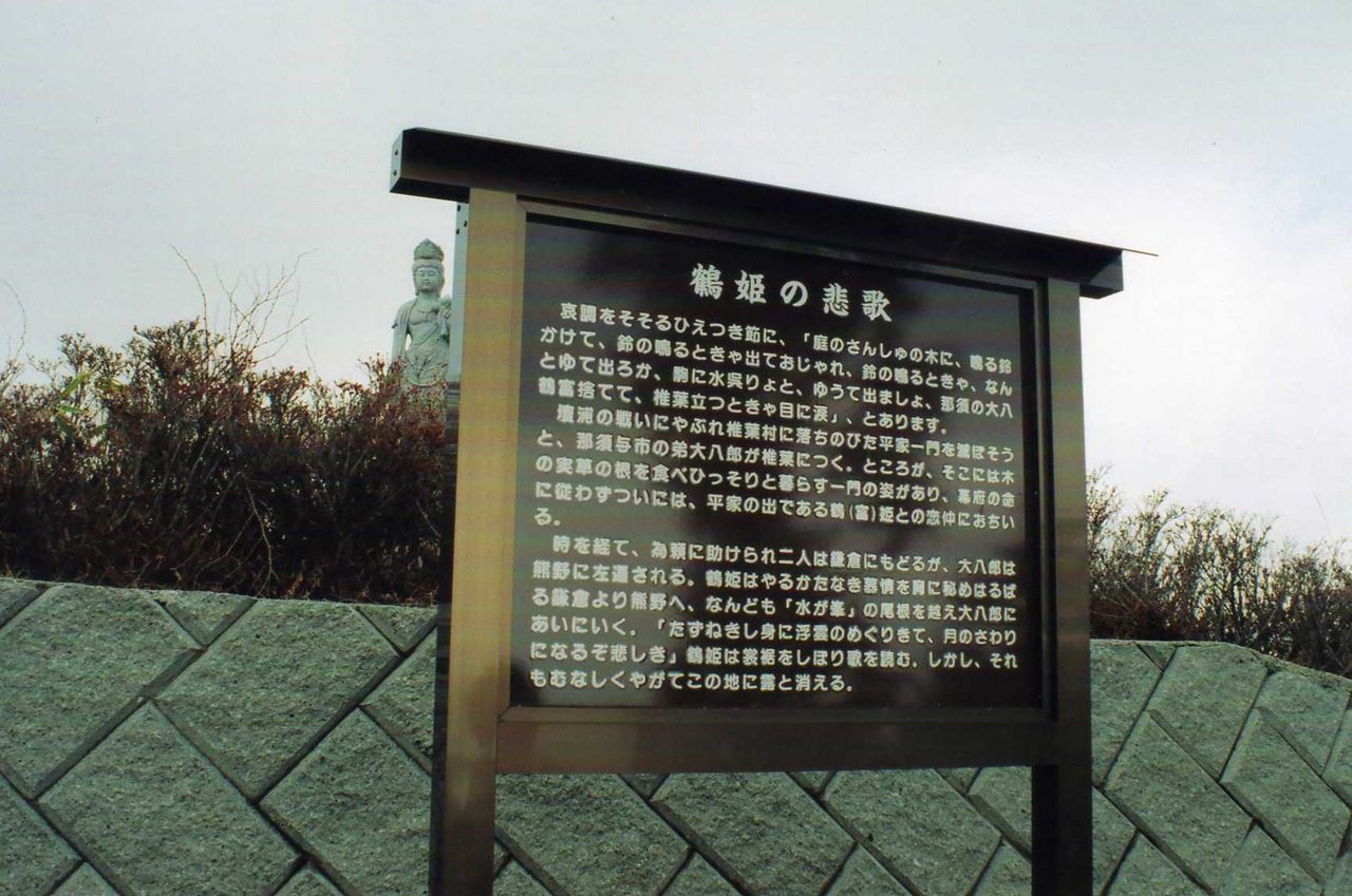 野迫川近くに鶴姫公園が新しく造られていた。平家の落人、鶴富姫と、源氏那須大八郎の悲恋伝説によるものであり、宮崎県椎葉の山中に鶴富屋敷も存在する。大八郎の転属によって、離ればなれになった両人であるが、大八郎の赴任する熊野へ向かう途次、病に倒れた鶴富姫が、野迫川の地で療養する。村人の好意で大八郎と再会するが、姫は帰らぬ人となる。何度かこの地を訪ねたが、姫の塚があると聞いたのは最近である。