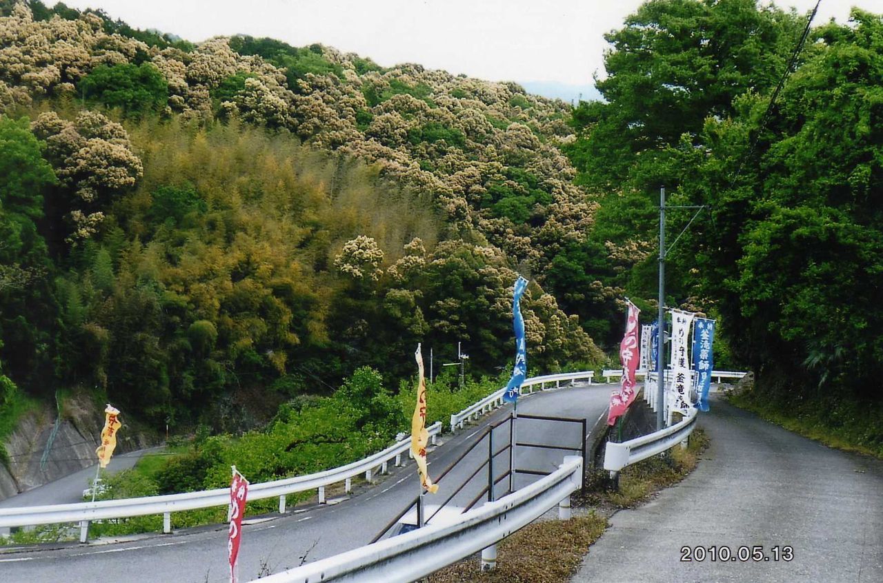 私達は国道を松瀬まで行き、真国川の川床に出来た釜滝の甌穴を見に行くことにした。県道4号線を少し東に走ると、釜滝地区がある。車道の横はすぐ下が川の流れである。川床は向い側で、甌穴らしいものは見えるが確認は出来ない。解説板によれば、上流にむかって、何百メートルかの区間で、甌穴現象が見られるそうである。民家も建ち並んでいるので、徒歩で無い限り観察は困難だと思った。