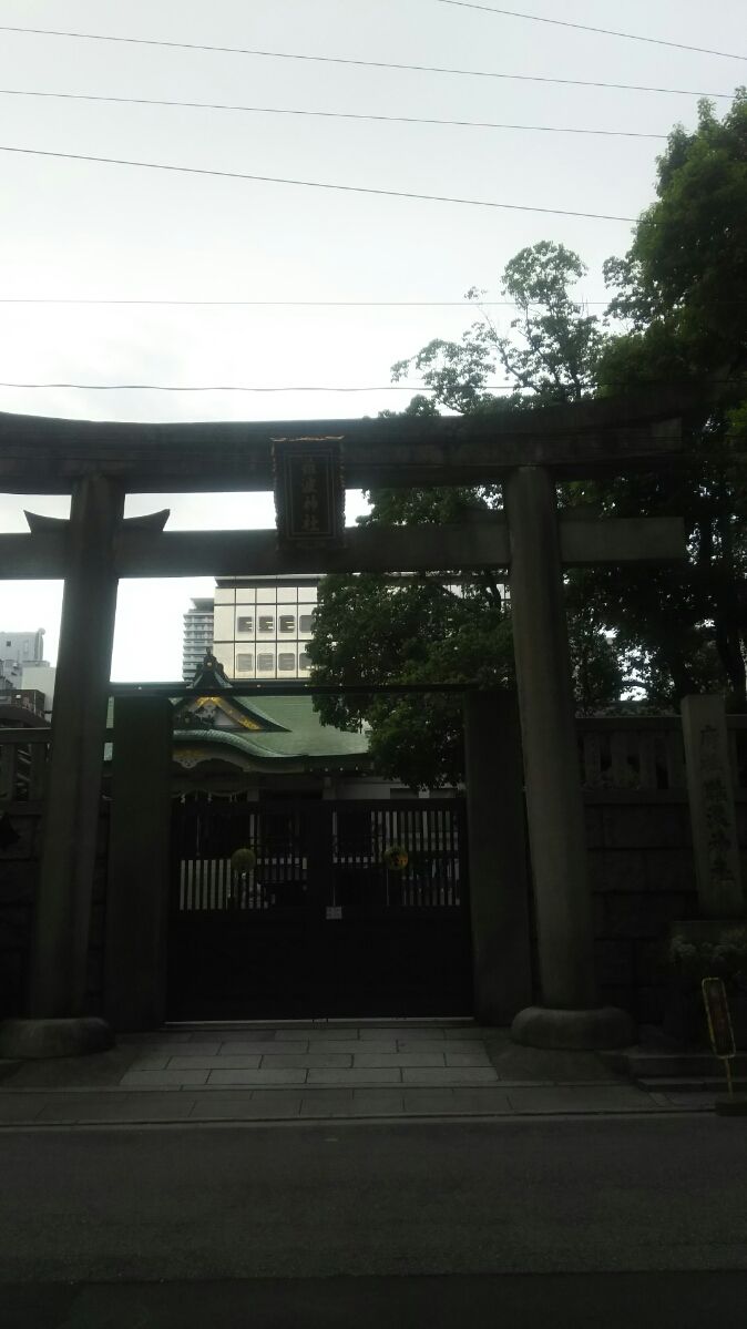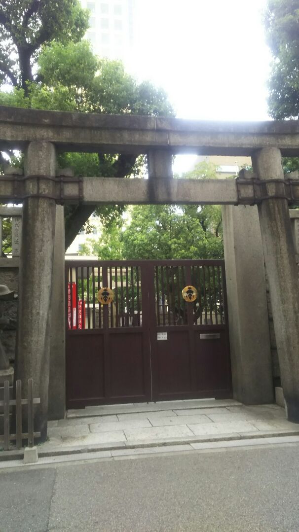まだ時間があったので、近くの難波神社にも行ってみました。さすがに門が閉まっています。