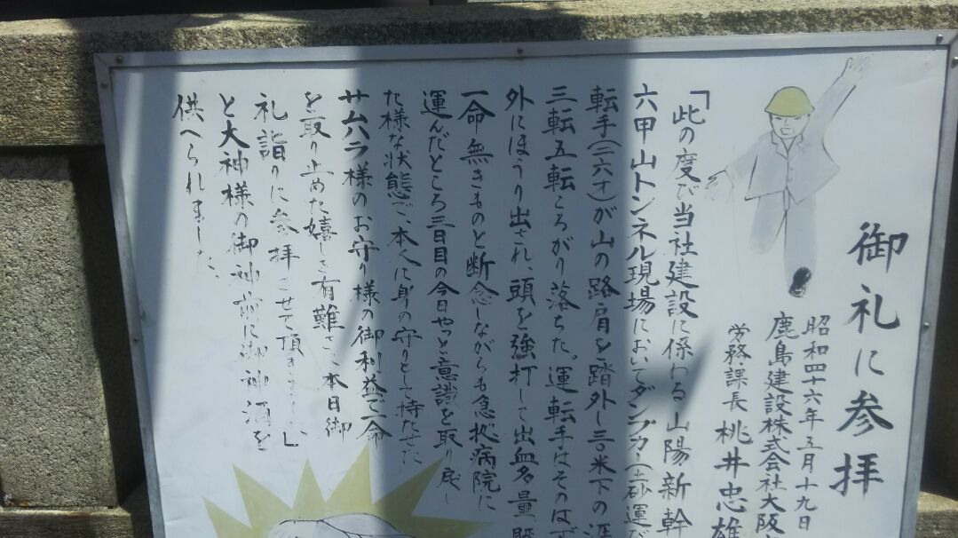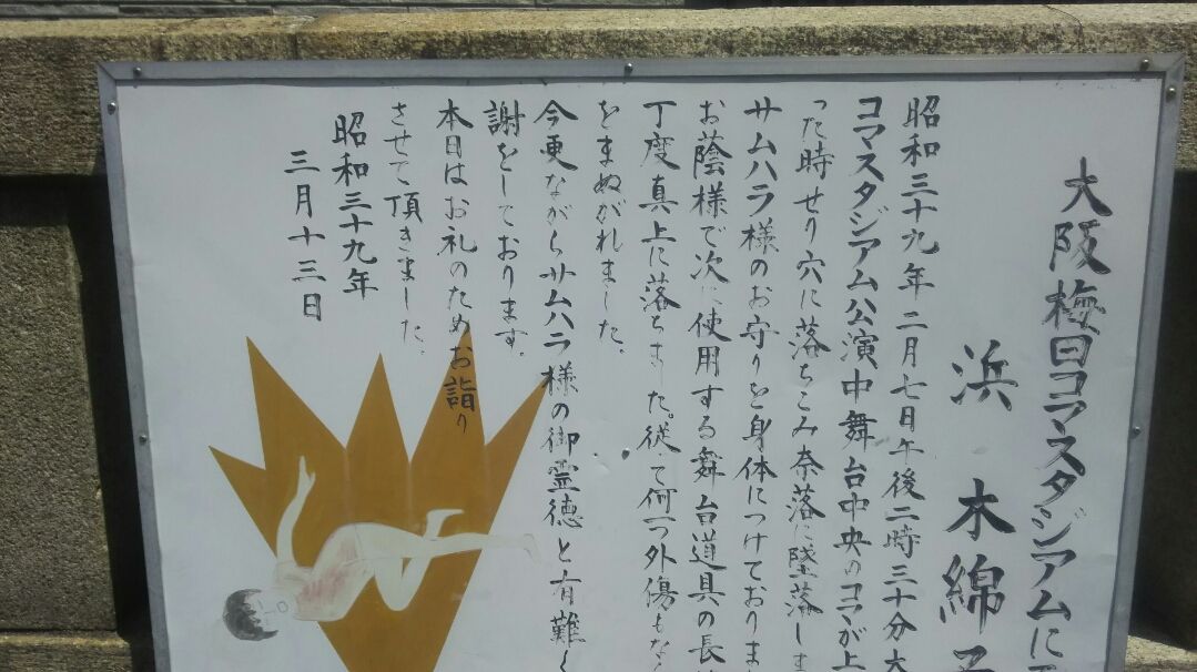 神社の神秘な力を表現している看板 ちなみに浜木綿子は、三代目市川猿之助(二代目市川猿翁)の妻、香川照之の母親です。