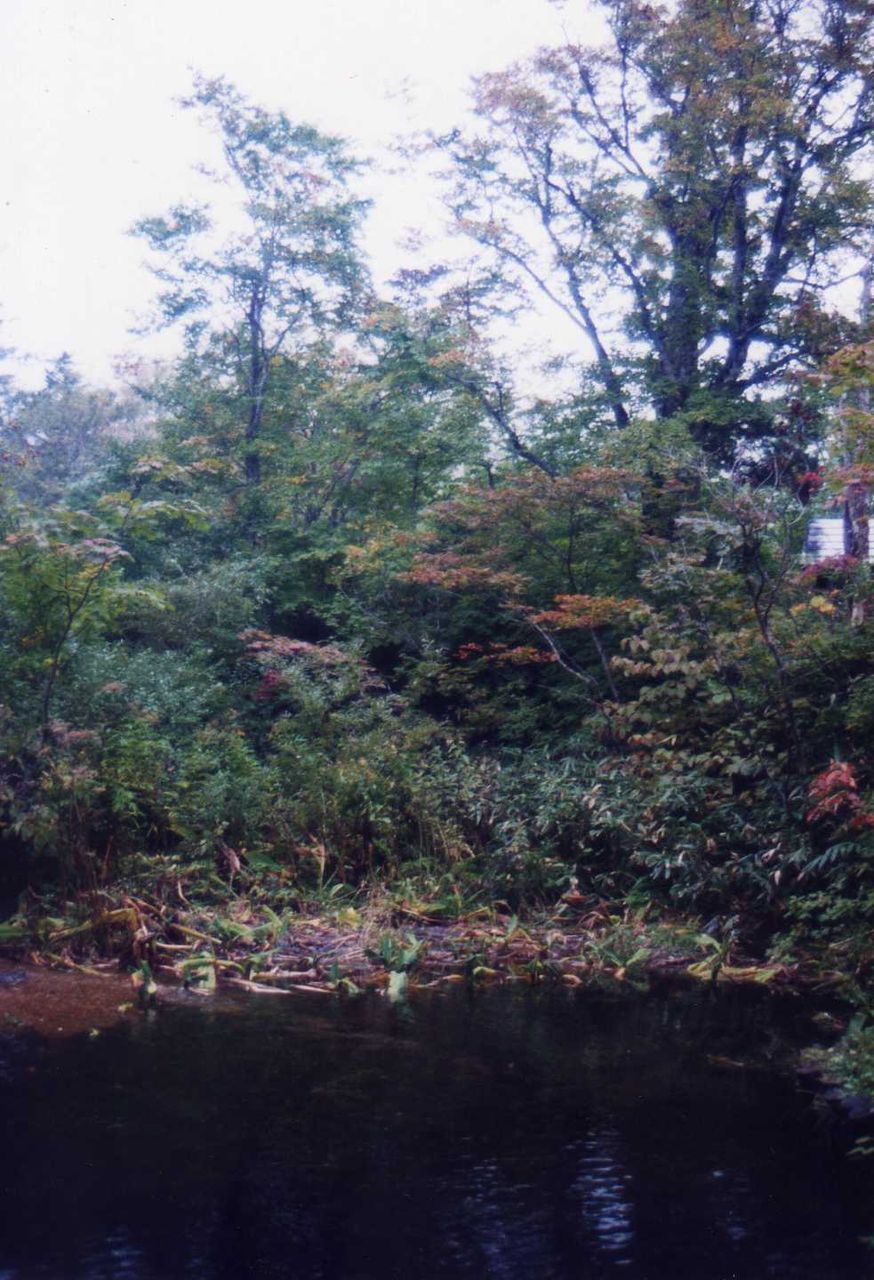 田代平、八甲田温泉の近くから、谷地湿原に向かう。ブナやナラの樹林が拡がって雰囲気の良いところである。谷地湿原を少し行くと、宿泊地谷地温泉(019-693-2211 1161直通)があった。日頃から秘湯だと信じていたのであるが、バスの団体客あり、日帰り客あり、建物はお世辞にも良いと言えなかった。通された部屋も、小さなテレビこそ備えていたが、裸電球が1ヶ。昨日のいわき荘と比較して雲泥の差があった。湯治向きの湯は確かに良いのだろう。38℃の温い湯に30分、白濁した熱い湯に5~10分入るのである。大勢の人が押し寄せたら、とても入っていられない。