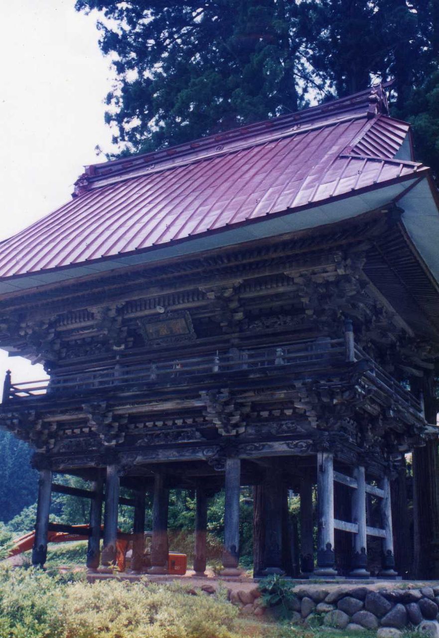 走ること約1時間、国道117号線から右折して栄村の常慶院を訪れる。標識が全然無くて、少し道に迷ったが民家から離れた高台にお寺はあった。信越界一の名刹と言われる常慶院は山門の立派なのに驚く。300年の風雪に耐えた山門は信濃の陽明門(管理人注 日光東照宮)と崇敬される堂々たるもので彫刻も素晴らしい。