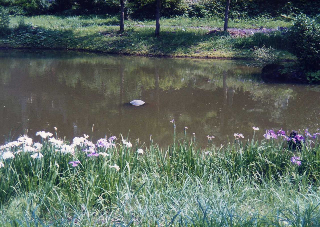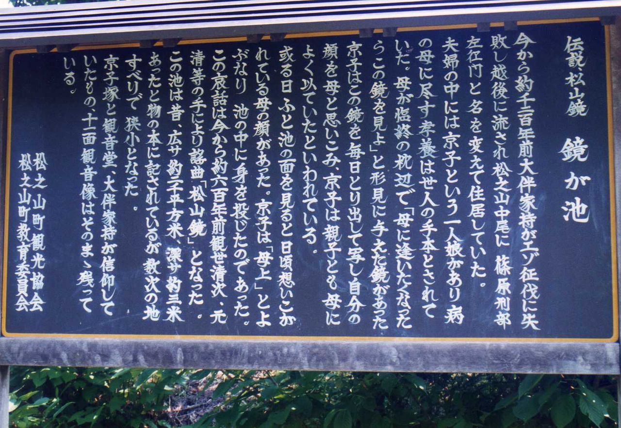 松之山温泉街は以前訪れたので割愛し、国道353号線から少し外れた、鏡ヶ池に立ち寄った。万葉歌人、大伴家持にまつわる伝説のある「松山池」は地滑り等で規模が小さくなったそうである。公園化が進んで、附近には花が植えられ、昔の面影とは遠のいているようだった。