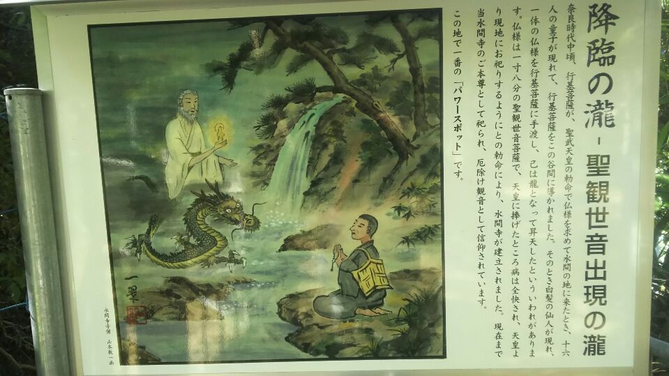 水間寺は南海本線、貝塚駅から水間鉄道(ほぼチンチン電車程度)という電車に乗り換えて終点まで乗り、徒歩10分程度です。聖観世音が出現したという滝もあり、厄除けや交通安全で有名です。