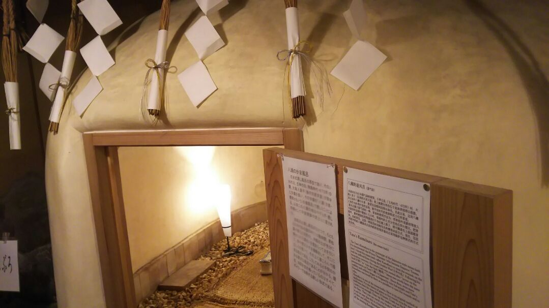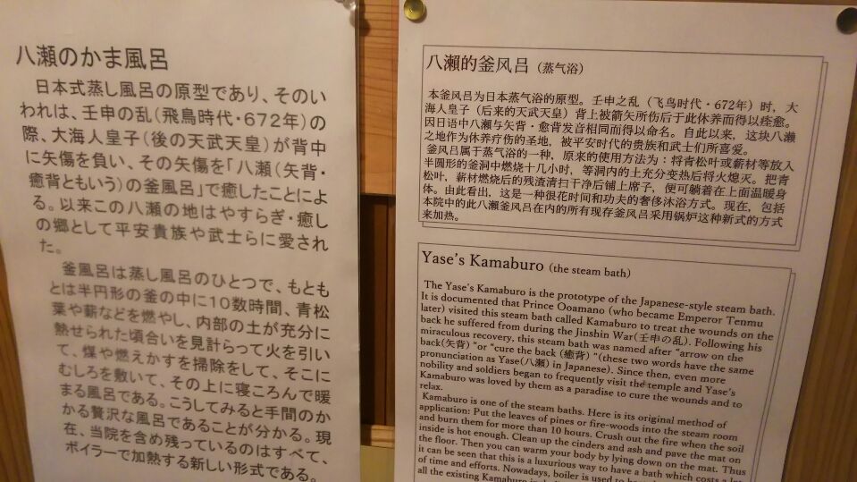 瑠璃光院のもう1つの名物、「八瀬のかま風呂」です。日本式蒸し風呂の原型とされています。壬申の乱で傷を負った大海人皇子(天武天皇)が傷を癒したとのことです。