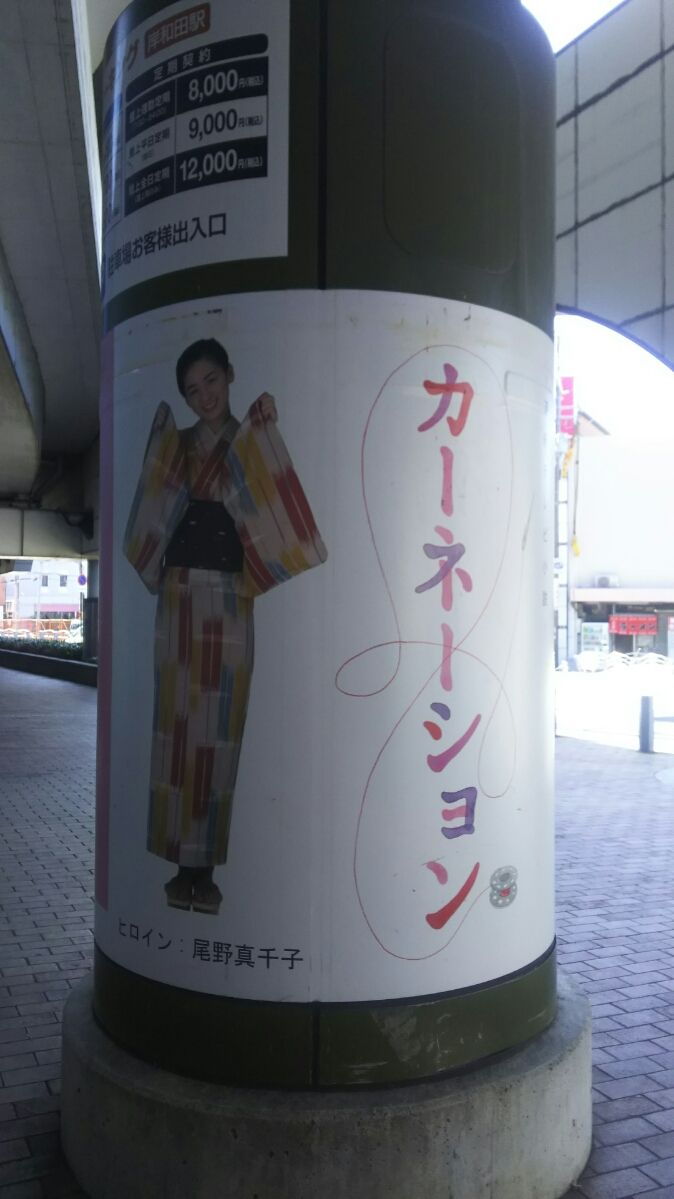 少し暗いですが、NHKの朝の連続ドラマの看板と主役の尾野真千子 このドラマは平成23年度下半期ですから、かなり時間が経過しました。