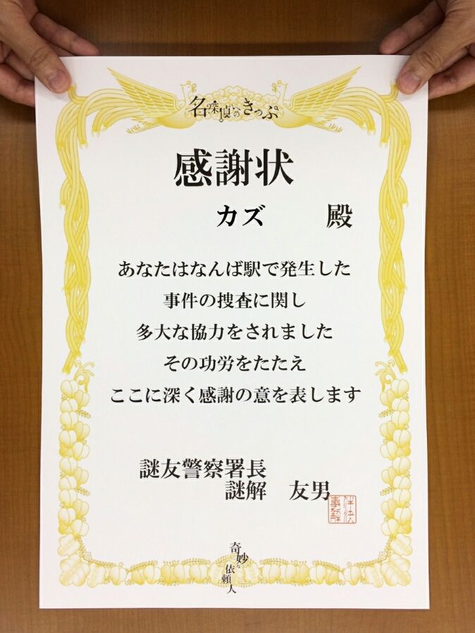正解を貰って、なるほどと思いました。なお、解答が合っていても、間違っていても感謝状が貰えます。
