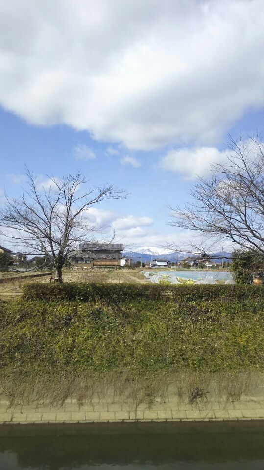 難波から阪神高速、名神道を利用し、滋賀県を経て、岐阜県にやって来ました。途中の高速道路から見る風景は雪が残り、まだまだ冬を感じさせます。