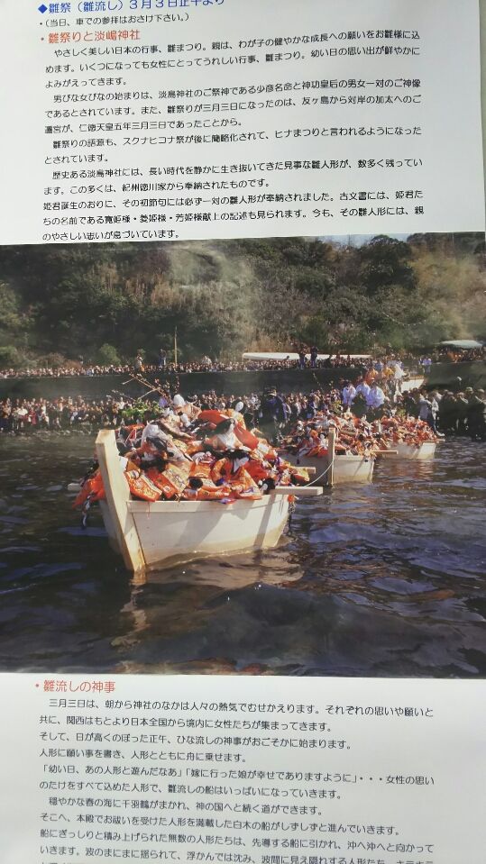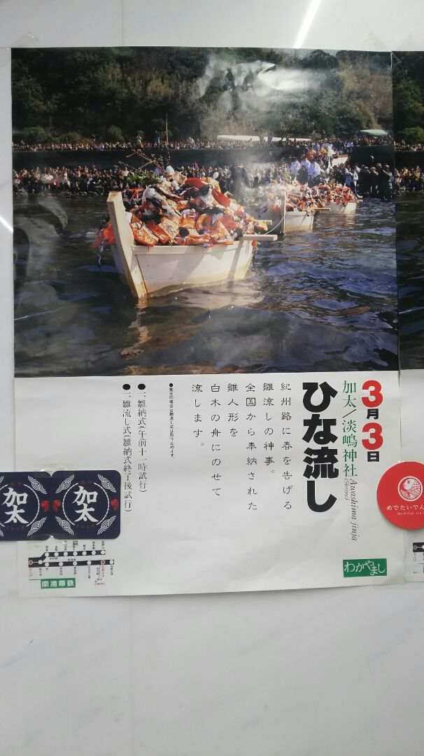 皆さんこんにちは。南大阪在住、ブログの管理人「カズ」です。本日は3月3日、桃の節句です。前回の記事でも雛人形をご紹介しましたが、現在、和歌山市加太の淡嶋神社(あわしま)の流し雛が、なんば駅に展示されています。