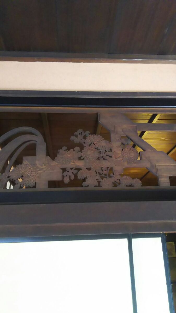 欄間 薩摩杉を使用し、菊の模様が描かれています。