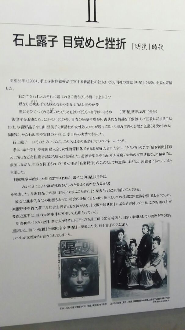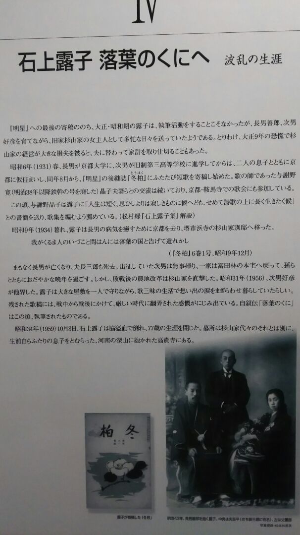 杉山家の向いに寺内町センターがあり、石上露子(いそのかみつゆこ 歌人 本名杉山孝(たか) 杉山家の長女として生まれる)の生涯が説明されています。文筆活動の時期は短かったですが、地元にいながら中央文壇にも高い評価を受けました。晩年は夫、2人の子供を亡くし、当屋敷を一人で切り盛りしたと言われています。
