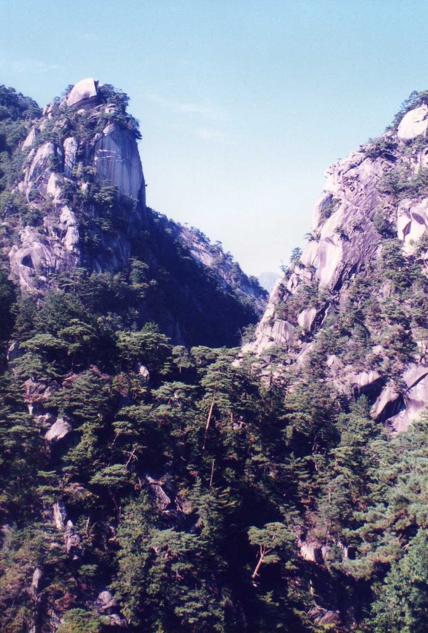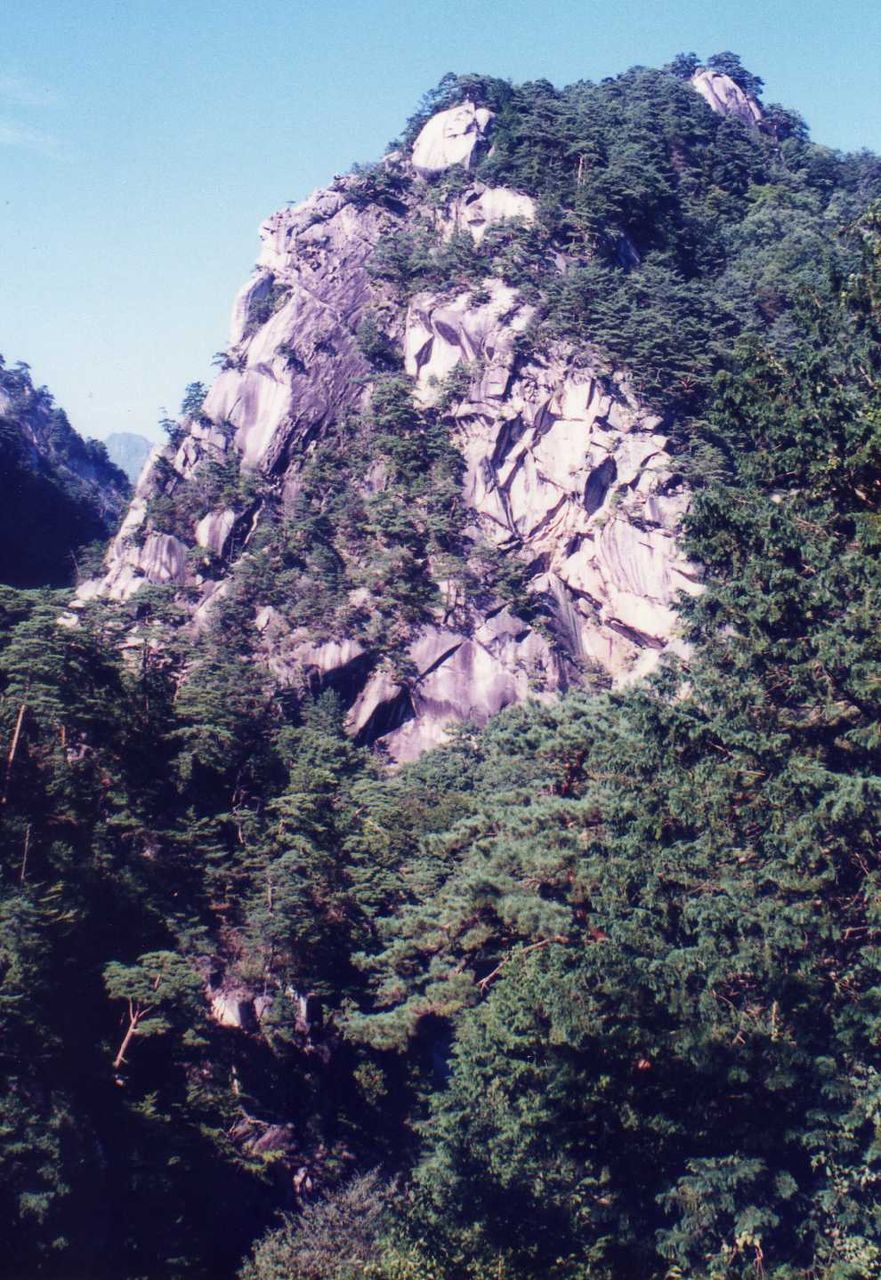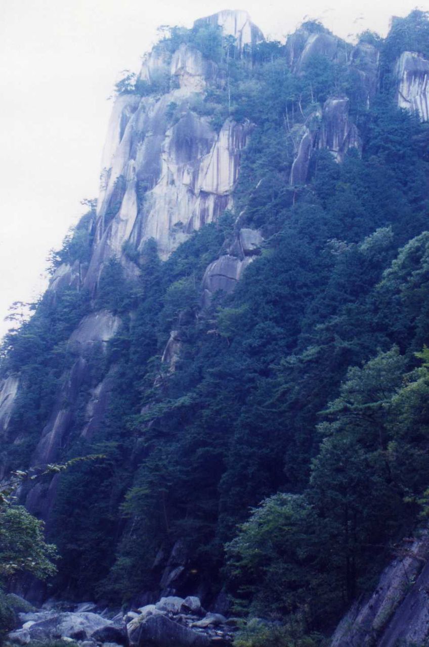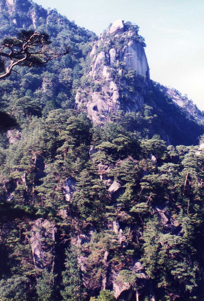 仙娥(せんが 管理人注 中国神話に登場する月にいった女性)滝入口の売店に駐車、急な坂道を下って仙娥滝を見る。水量も多い堂々とした滝である。飛沫が舞い散っている。遊歩道を下っていくと、覚円峰(かくえんぼう)を間近に見ることが出来る。さすがに国の特別名勝に指定された昇仙峡の見所である。少し白味のある大きな巌と松の緑、青い空のコントラストがとても良かった。紅葉があれば更に美しいと思われる。