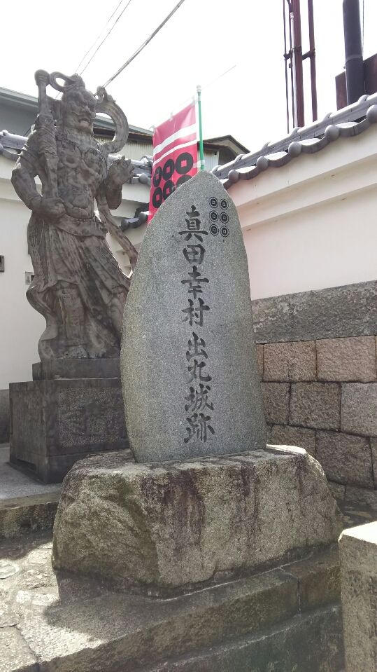 2,3日前とはうって変わったような、寒く、風が強い中、大阪市の玉造周辺と、京都七条、四条に真田幸村、豊臣秀吉関連の名所・旧跡を訪ねてきました。まず、最寄り駅にて「京都みやこびと1dayチケット」を購入。これは南海、市営地下鉄、京阪が乗り降り自由という、かなりお得なチケットです。また、多少の特典クーポンもついています。南海天下茶屋駅で降りた後、地下鉄堺筋線に乗り換え、長堀鶴見緑地線経由で玉造駅へ。地上に出ると、目の前に「三光神社」が見えます。この境内には、陣中指揮をとる勇壮な真田幸村の像と、そのすぐ隣に大阪城と地下でつないだという伝説の真田の抜け穴があります。