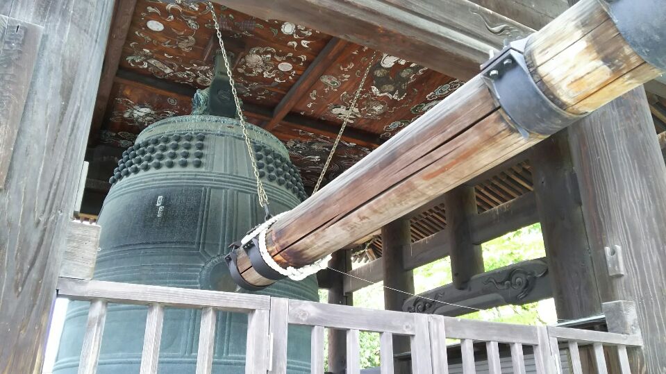 次は隣の敷地内にある「方広寺」です。ここには豊臣秀頼が鋳造した梵鐘に、徳川家康がイイガカリをつけて、大坂の陣勃発のきっかけとなった「鐘銘事件」の舞台となったところです。梵鐘に刻まれた「国家安泰」「君臣豊楽」の文字が家康の名前を分断し、豊臣家の繁栄を祈ったものという因縁をつけた話は有名です。その鐘は重さ82.7トンの重厚なものです。