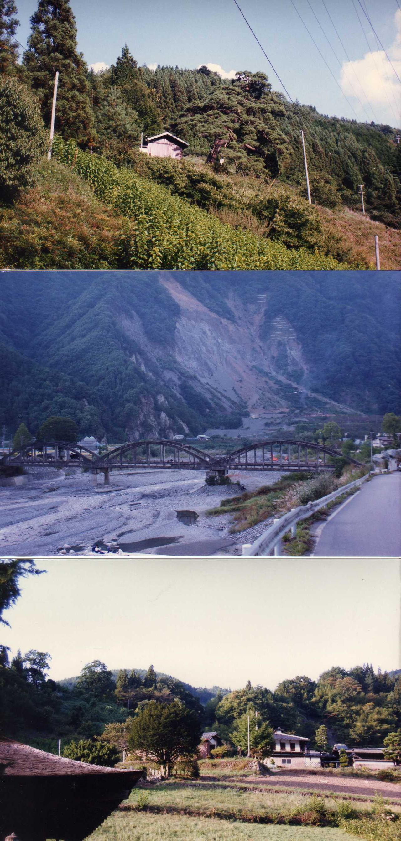 現在では、ダム建設や復旧工事は進んでいるようだが、多くの人家が被害に遭い、爪痕は今も残ると言われる。大西山を始め、各所の大崩落の跡は自然の脅威、底知れぬ破壊力に驚くばかりである。
