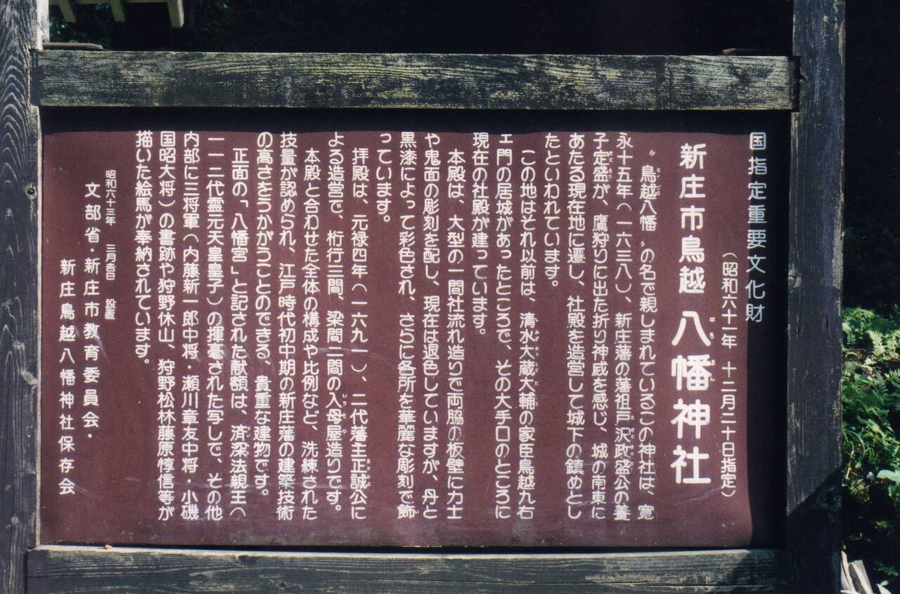 新庄市では、最上地方で最も典型的な中門造りの中農住宅といわれる旧矢作家を見る。更に地元の人達から鎮護の神として、厚い信仰を集めてきた鳥越八幡神社に詣でた。この辺、もっともっと時間をかけてみたい気がした。