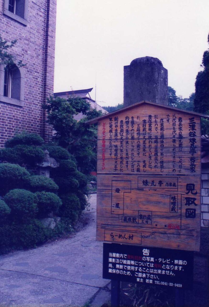 大和川酒造、嶋新商店(荒物店)等を見て、少し離れた喜多方市煉瓦館と若菜屋レンガ館を見学した。三津谷煉瓦亭、若菜屋は明治40年頃より、大正初期に建築されたもので、入口左側の家財蔵は使用されたレンガは約42,500本にも及ぶといわれている。三津谷地区は、街から少し離れている関係で、人は少なかった。
