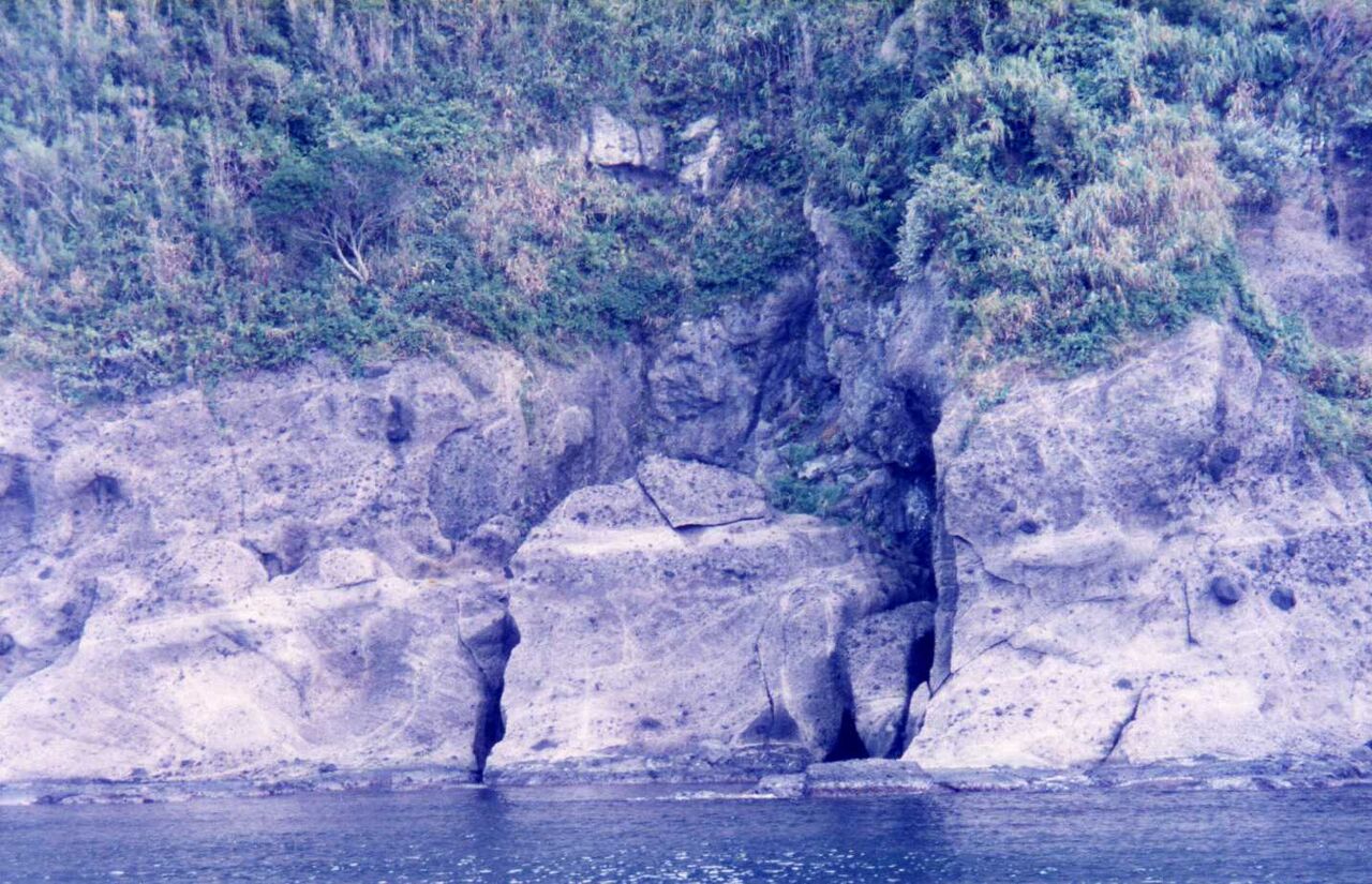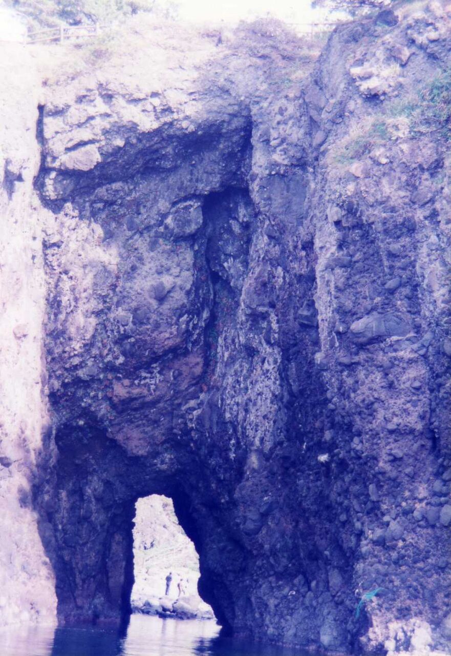 私達は遊覧船に乗ることにした。海上より見る巌門、鷹ノ巣の断涯、碁盤岩など迫力ある岩場が続いて、楽しい約1時間の乗船だった。福浦の旧灯台もよく見えたし、能登の二見といわれる機具岩も手近で、その姿を見せてもらった。