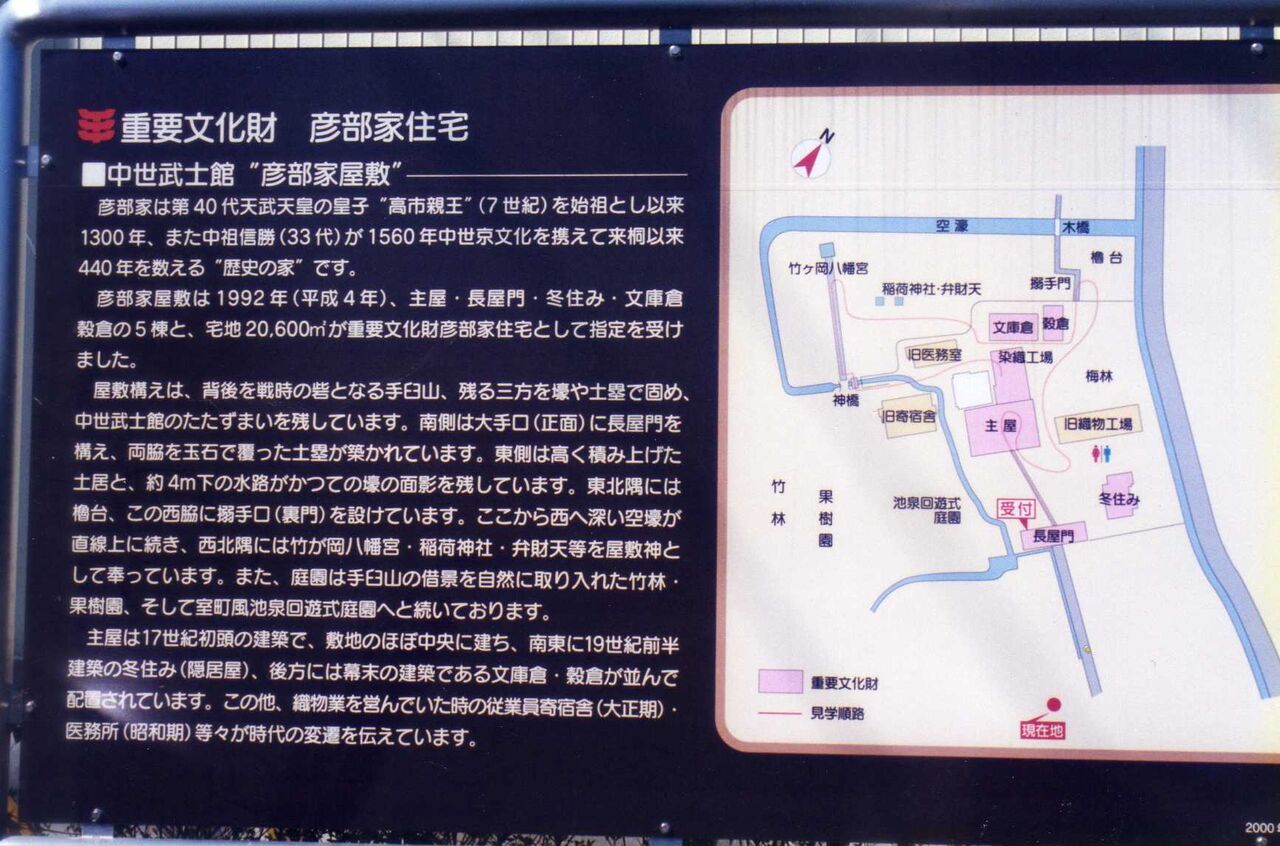 桐生には立派な文化財が多くて、機会を見て、ゆっくり訪れたいと思うが、取りあえず、賀茂神社と彦部家を訪れる。彦部家は重要文化財の指定を受けている。渡良瀬川の右岸に位置する中世の城郭の構えをもつ古い建造物である。平成4年に解体、修理されたもので堂々たる風格をもっている。広い5,000坪の敷地には、主屋をはじめ、倉、冬柱、長屋門、八幡宮も建立されている。近年、桐生織物の発展に寄与した旧家でもある。少し開門時間には早かった。写真だけと思ったが、家の人が出て下さって、中をどうぞと言われた。構えと庭の広さから、相当見学には時間がかかると、折角だったが、失礼することにした。又の機会を待ちたい。