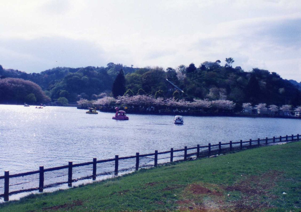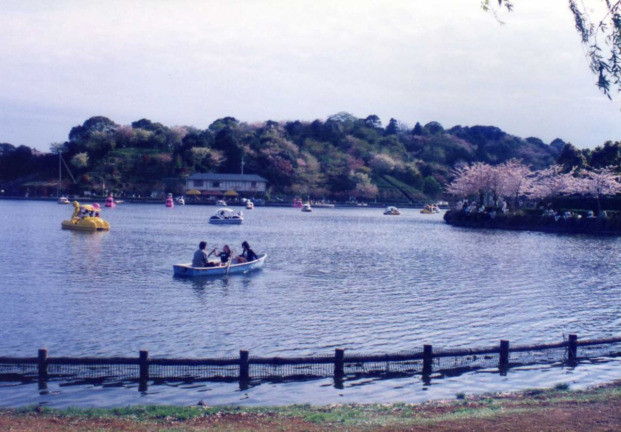 池の周辺は、桜並木が多く、遅咲きの花は満開の様子だった。何艘かボート遊びするカップルもあって、長閑な風景である。