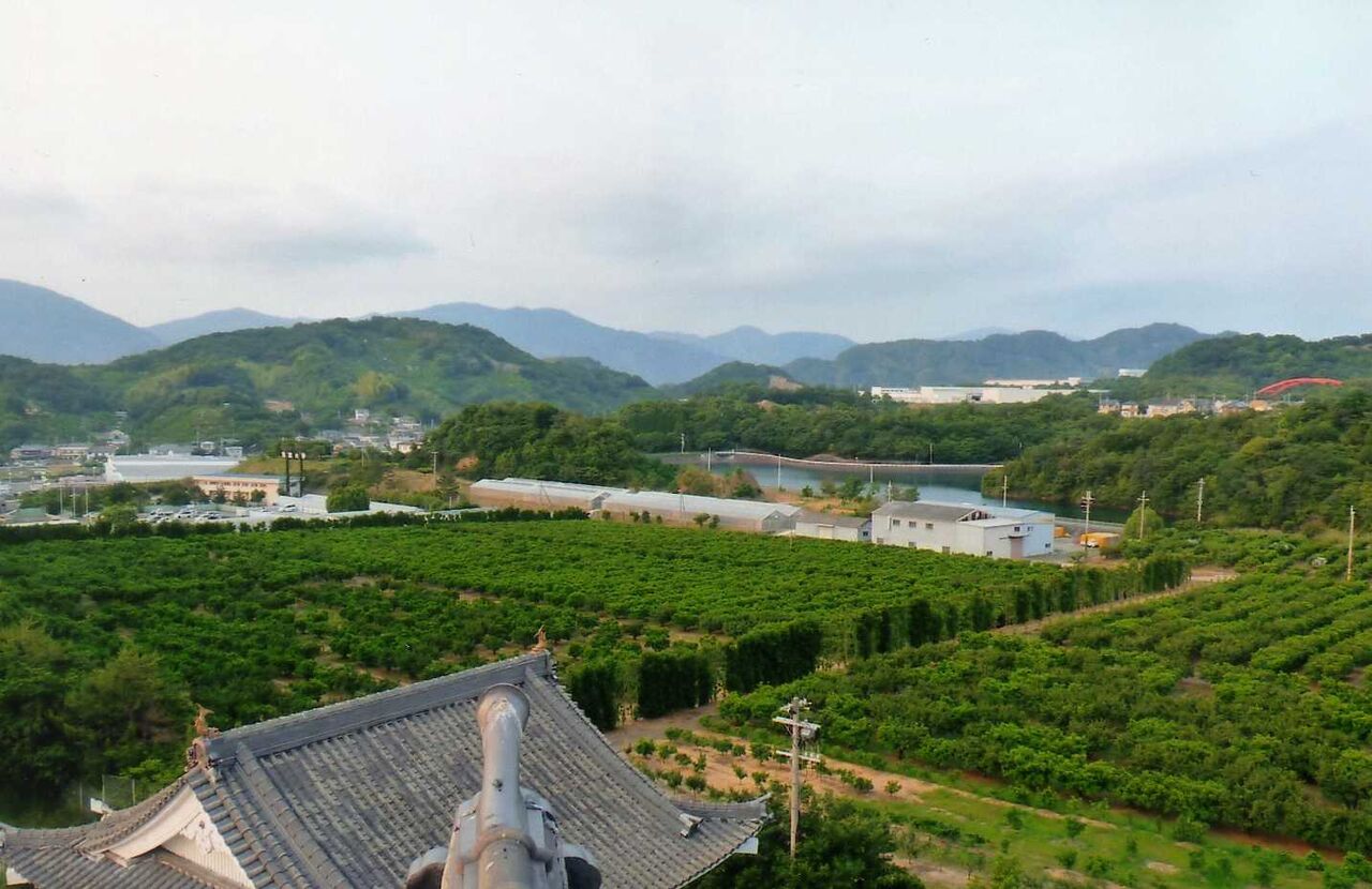 湯浅城(0737-63-6688 管理人注 現在も営業中)の到着は2時50分だった。宿舎「湯浅城」は青木山の一角、城址公園に建つ城をかたどった珍しい建物である。周辺は紀州名産、みかん畑が多く見られる。