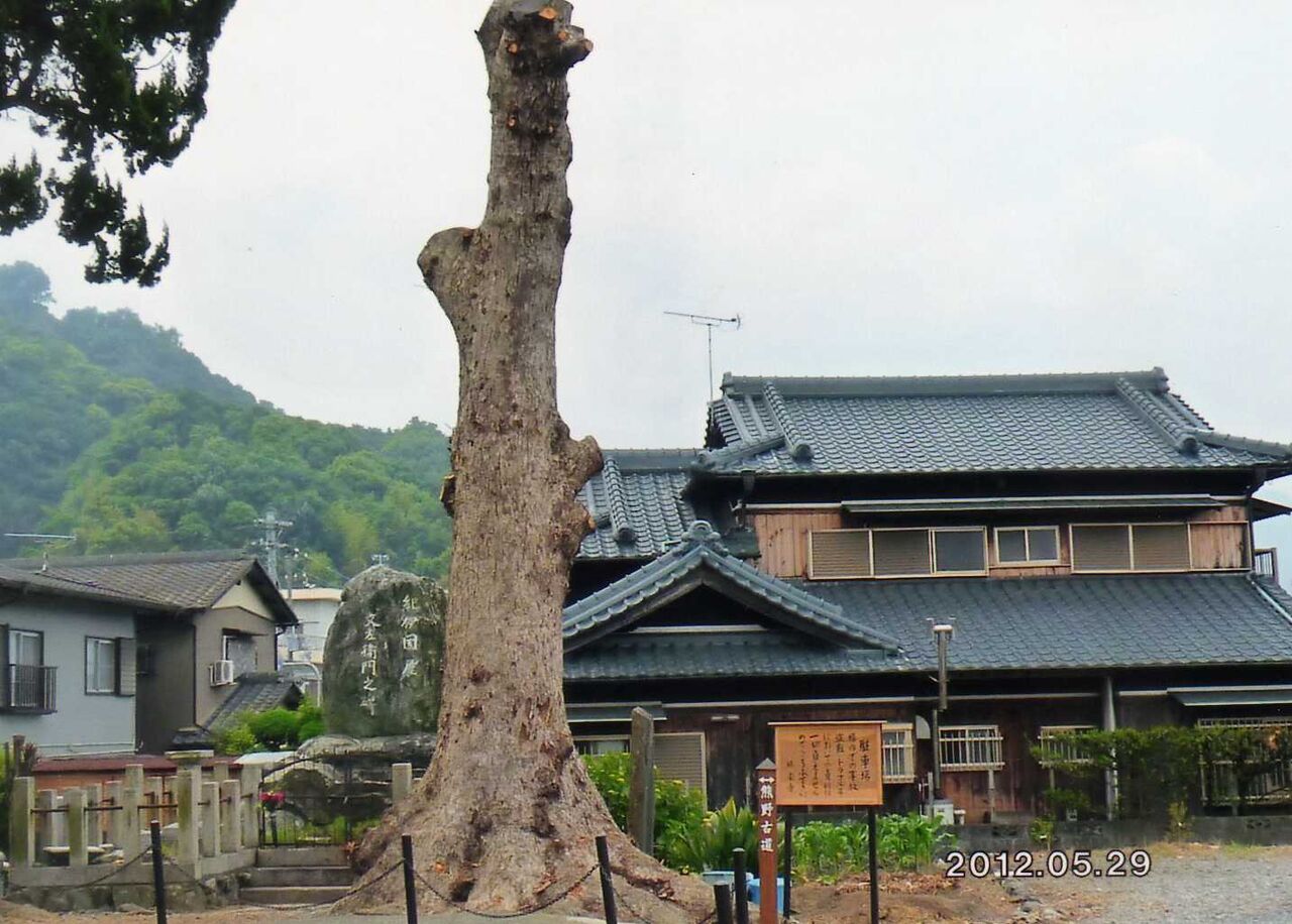 この後、熊野古道に沿った勝楽寺(しょうらくじ 管理人注 下記の写真より後、本堂が建設された模様 なお、かつての本堂は京都醍醐寺の金堂として豊臣秀吉により移築された。 境内には江戸時代の豪商、紀伊国屋文左衛門の碑がある。これは写真に写っています。)を訪れた。楠の大木が枯れたものと思われるが、太い幹を残して無残に切り落とされており、同じ場所にあることから少々異様な感じを受けた。今日は広川町を中心に史蹟等を訪れる予定である。