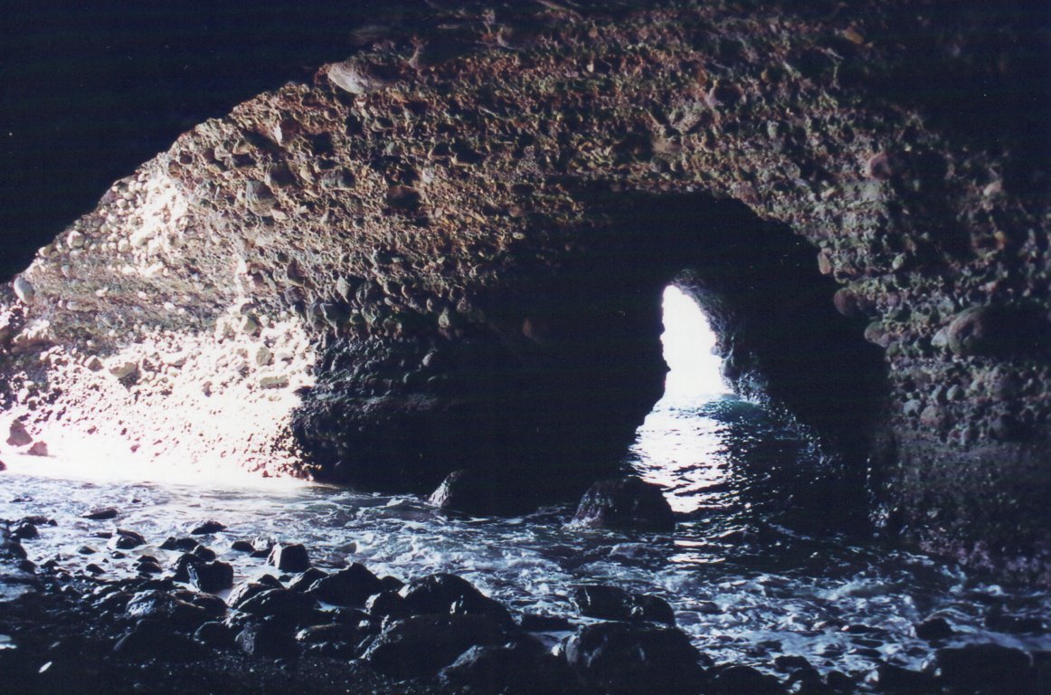 浜田の終点から最初に向った畳ヶ浦海岸は、漁港に隣接していて、小高い山の向こう側に拡がる広大な岩盤であり、観光用に造られたトンネルを通り抜けて行くことが出来る。トンネルは2つあるが、最初のトンネルの先に大きな洞窟が拡がっていて、海に向って観音様をお祀りしている。