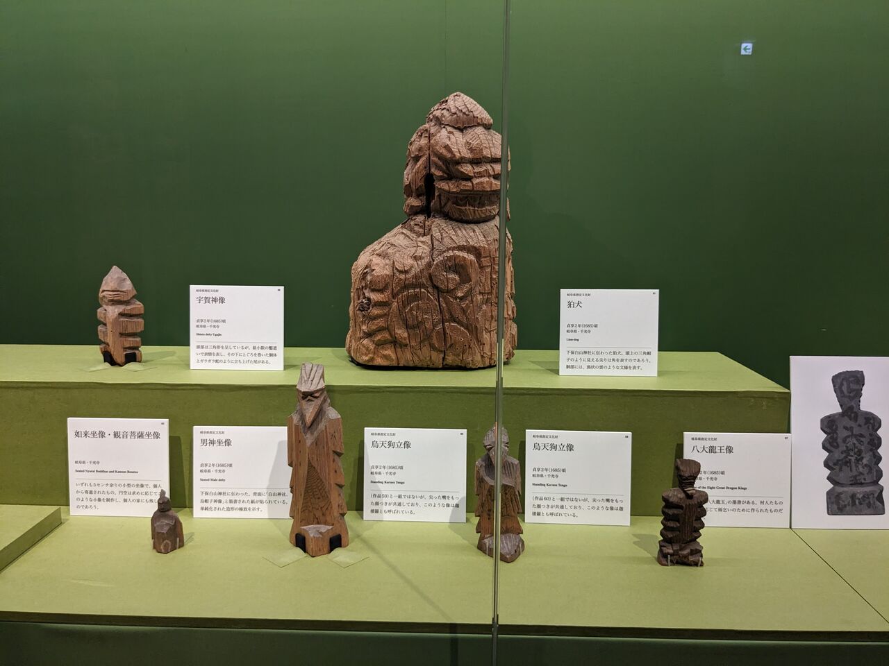 下段 右から 八大龍王像(法華経において仏法を守護する) 烏天狗立像 烏天狗立像 男神坐像