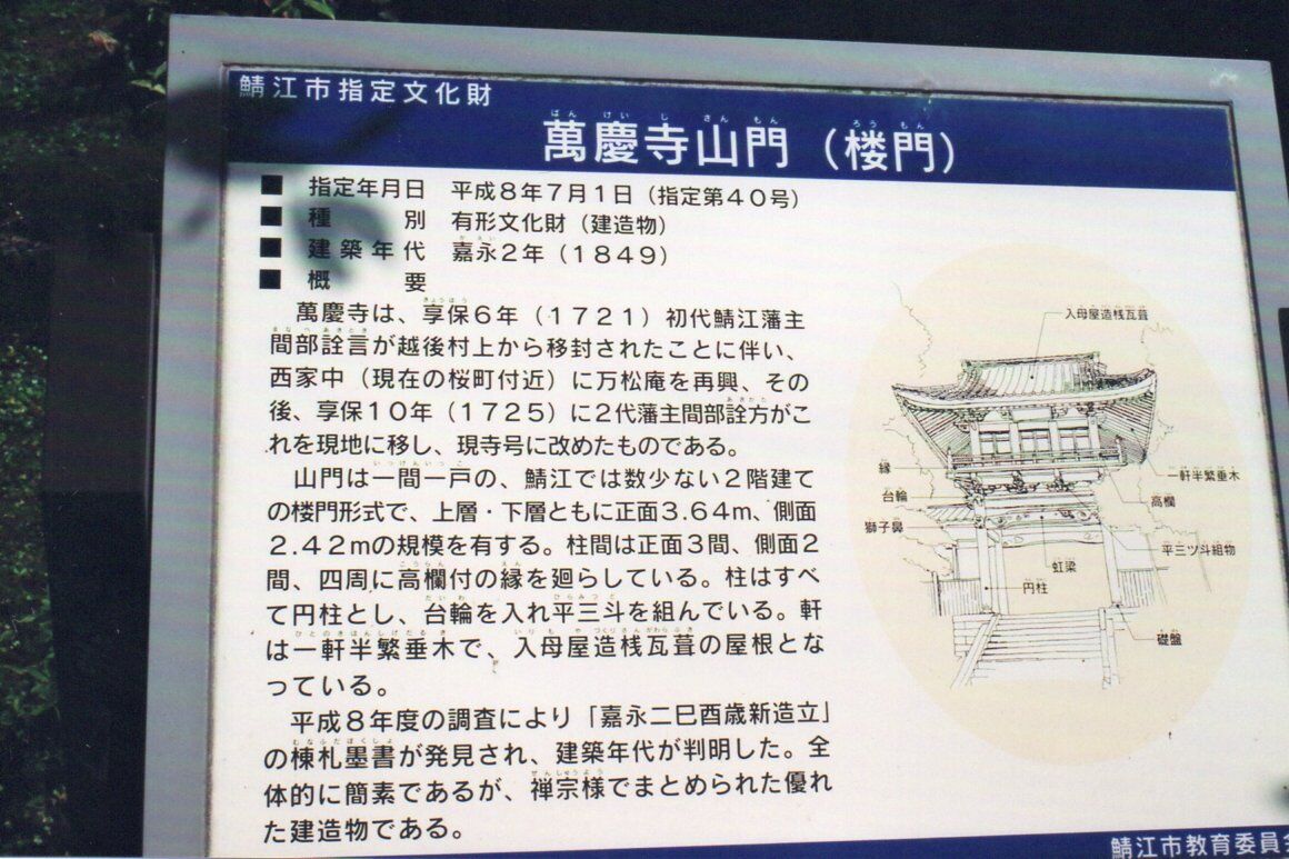 萬慶寺(ばんけいじ)には、鯖江藩七代藩主、詮勝公(間部詮勝 まなべあきかつ)の筆による「龍神」「雷神」「風神」の天井墨絵があり、住職の案内で種々説明をしていただいた。