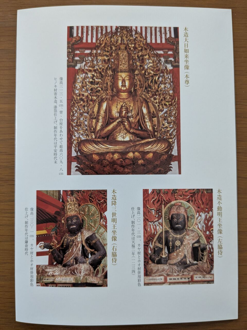 今回は内陣に入ることができ、国宝の大日如来坐像、降三世明王坐像(ごうざんぜ明王坐像)、不動明王坐像を拝見することが出来ました。