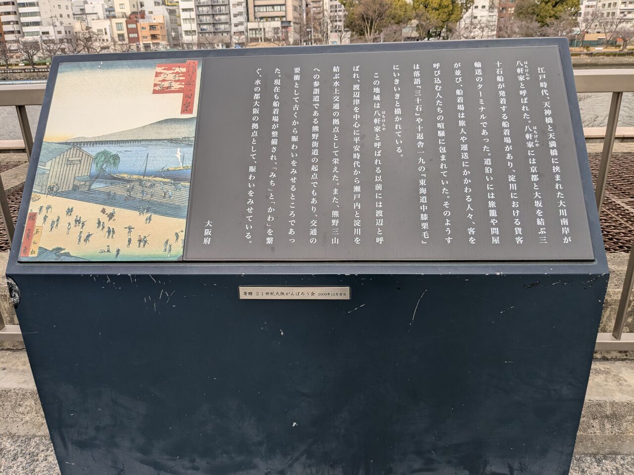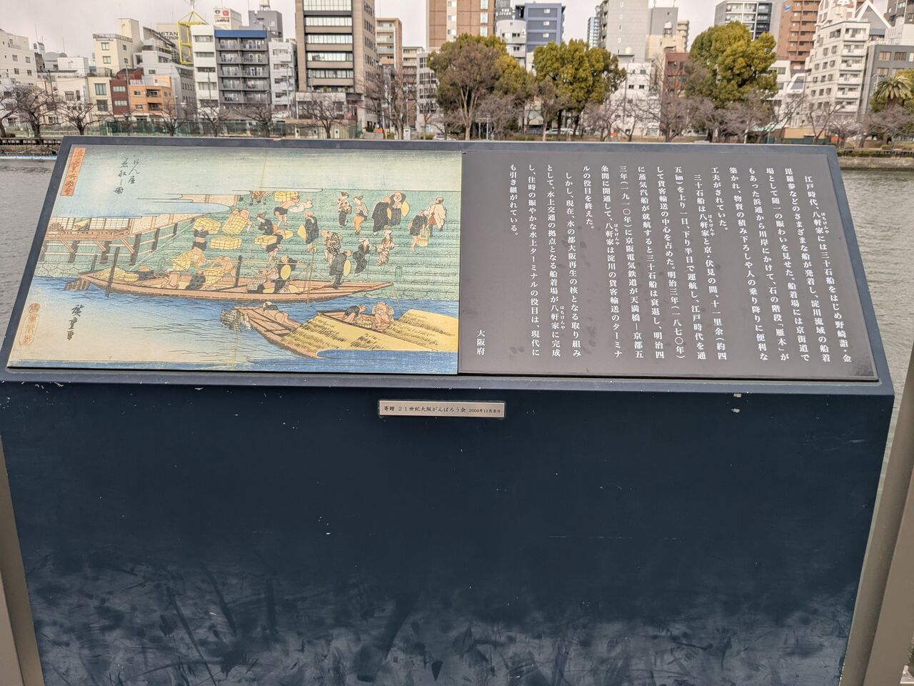 八軒家(はちけんや)についての説明 京都伏見と同地を淀川海運として、船で人・物が行き交っていました。