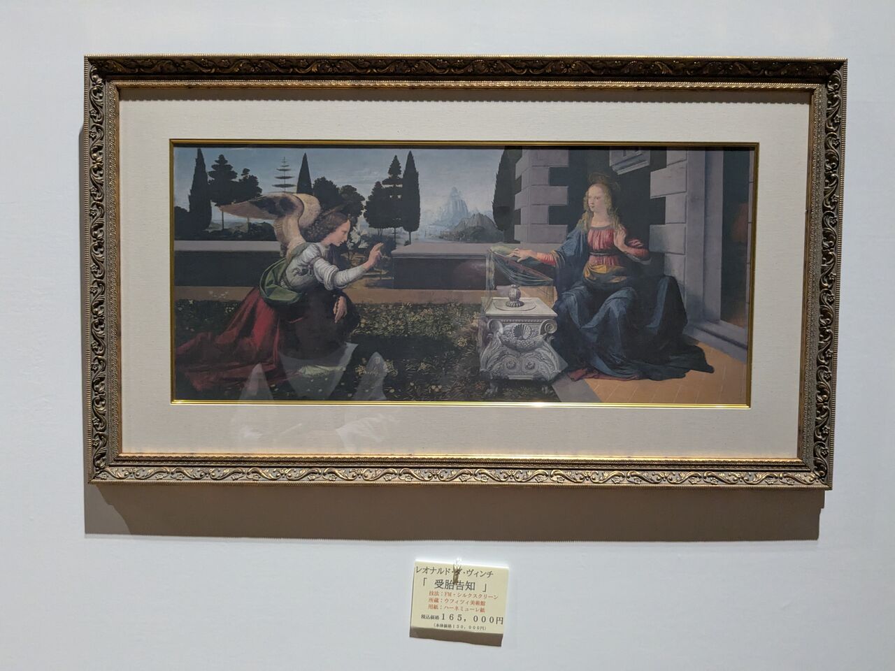 この写真はレオナルド・ダ・ヴィンチの受胎告知の複製画です。売店で購入できます。