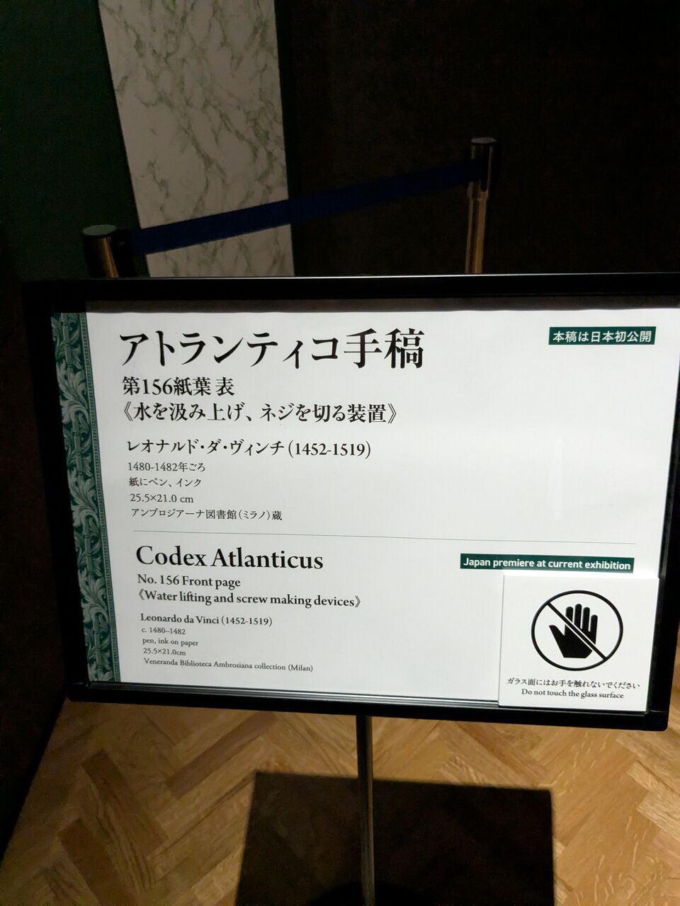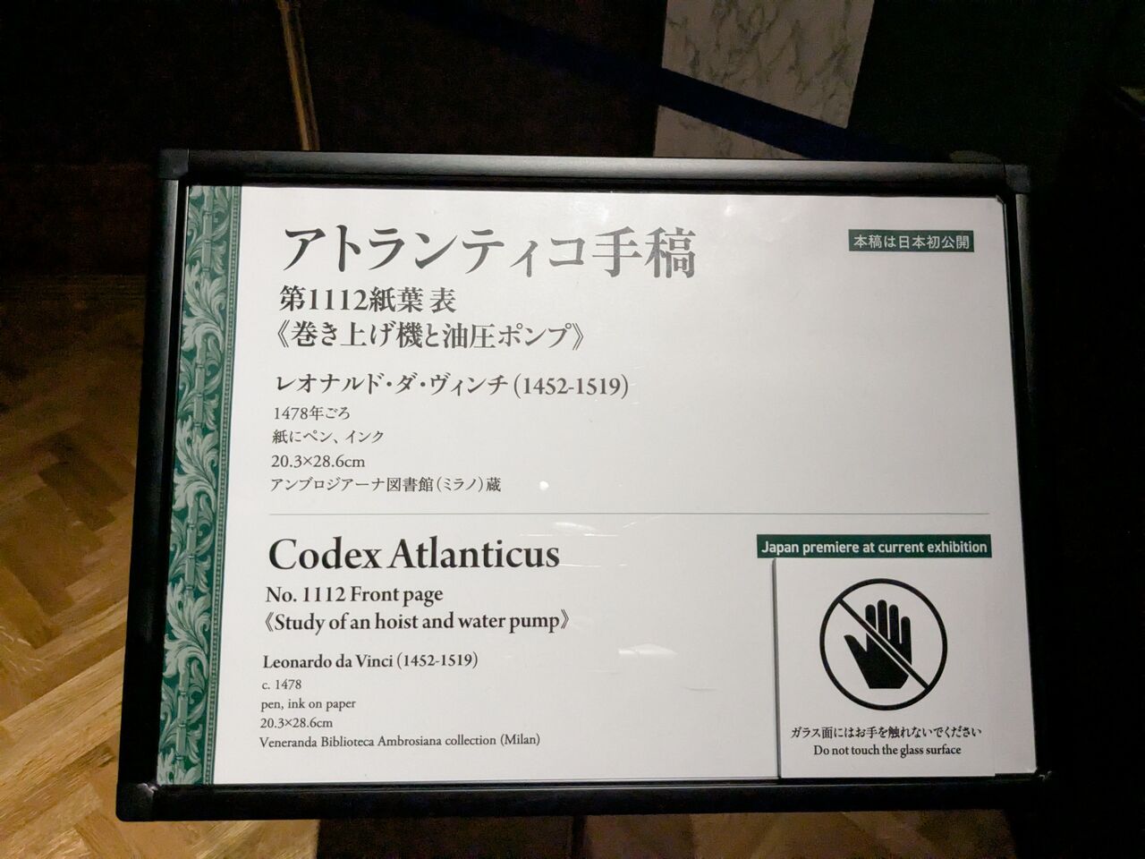 3つめの部屋にやって来ました。こちらにはレオナルド・ダ・ヴィンチによる「アトランティコ手稿」が展示されています。