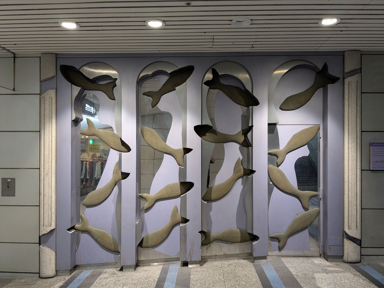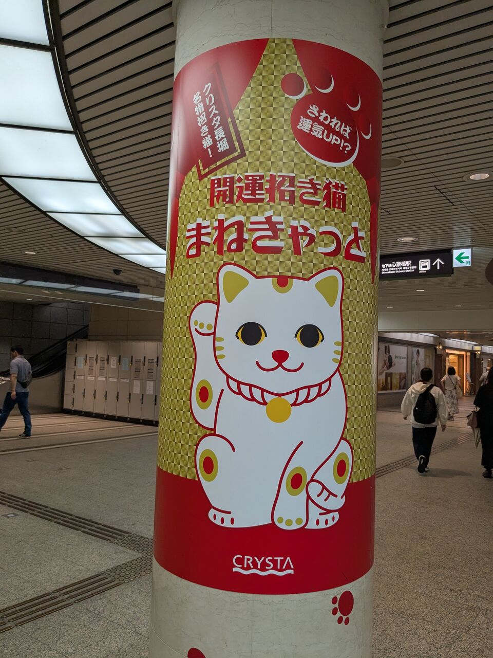 またしばらく西に歩いて行くと、柱に「まねきゃっと」が現れます。
