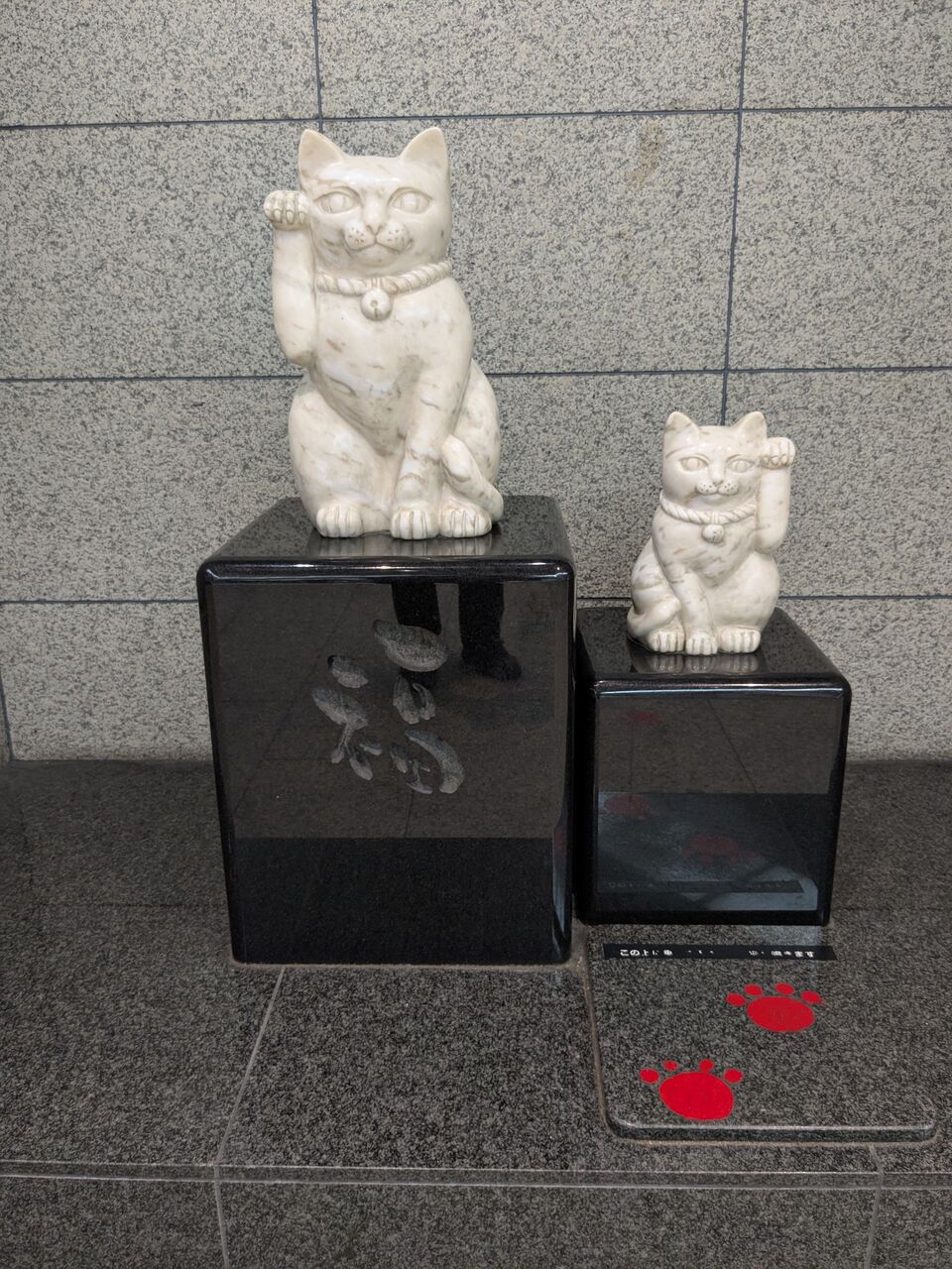まねきゃっとの足跡をたどっていくと、猫のオブジェがあります。
