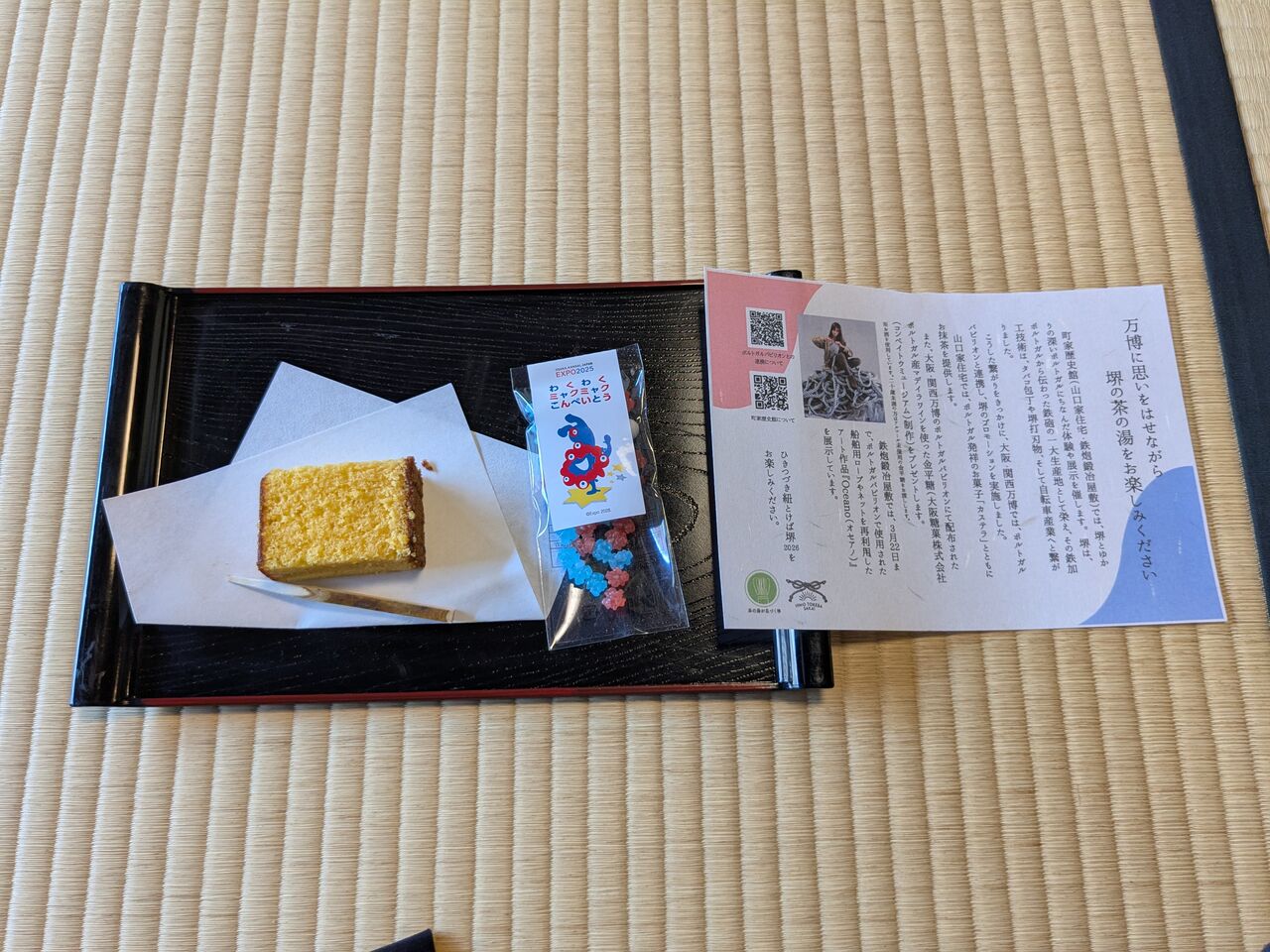 ポルトガル発祥のお菓子「カステラ」 また、万博会場のポルトガルパビリオンで配布された金平糖を頂きました。