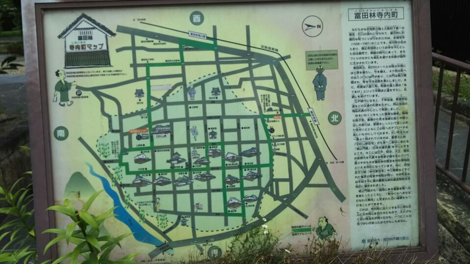 一週間以上日にちがたってしまいましたが、夏のカンカン照りの猛暑の中、富田林寺内町(じないまち)を巡ってきました。管理人自身、市内に在中しながら本格的に観光するのは初めてです。まず、寺内町の説明ですが、江戸時代から昭和初期の町屋が残り、大阪府では唯一、平成9年に、重要伝統的建築物群保存地区に選定されています。しかも当初から東西南北の道路で整然と区画され、下水道も完備。また、外部からの出入りは4ヶ所に限られていて、早くから自治的都市特権を得ていたとされています。場所は近鉄富田林駅から南東方向に拡がり、市内を流れる石川より手前側という位置づけです。
