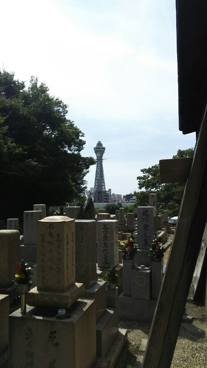 納骨堂から通天閣が見えます。