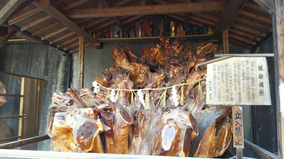 高野山奥の院にそびえていた杉の木が、境内に祀られています。