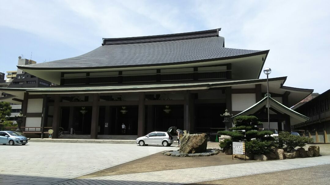 今年から山の日になった8月11日と13日の土曜日にお盆のお墓参りでお寺を巡りました。両日ともカンカン照りの夏空でした。まず、大阪本町というビジネス街のど真ん中に存在する、南御堂(正確には真宗大谷派難波別院)です。