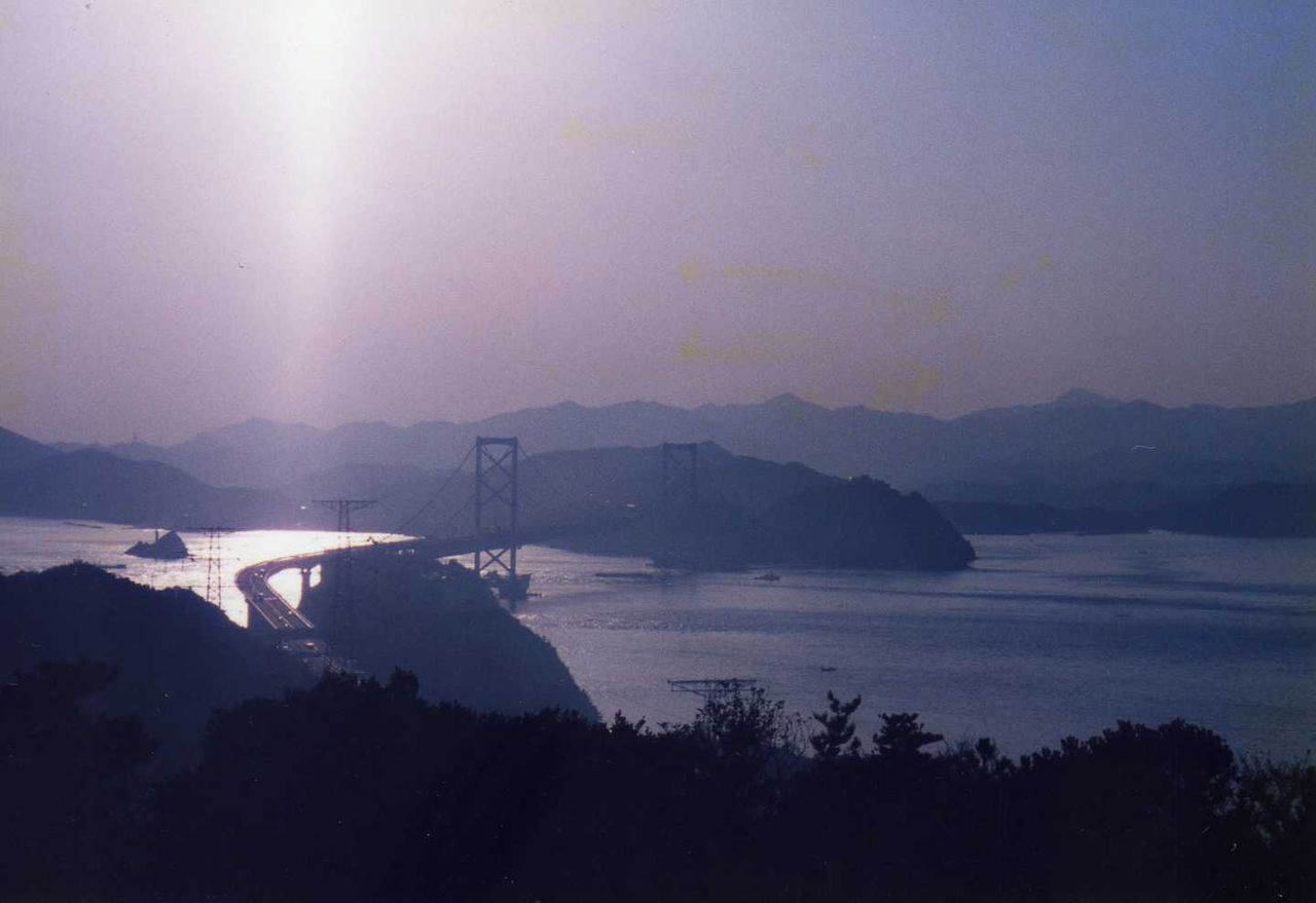 天気は良かったが、明石海峡大橋から見える景色は、少し霞んだようであった。大橋は車の量は少なかった。淡路サービスエリアで下車、巨大な明石大橋の姿を、ゆっくりと間近に見ることが出来た。開通後数日で、家族と通過したが、大変な混雑でサービスエリアはあったのかどうか記憶にないが、車を入れることなどとても出来なかった。(管理人注 明石海峡大橋の供用開始は1998年4月。開通当時は非常に混雑した)
