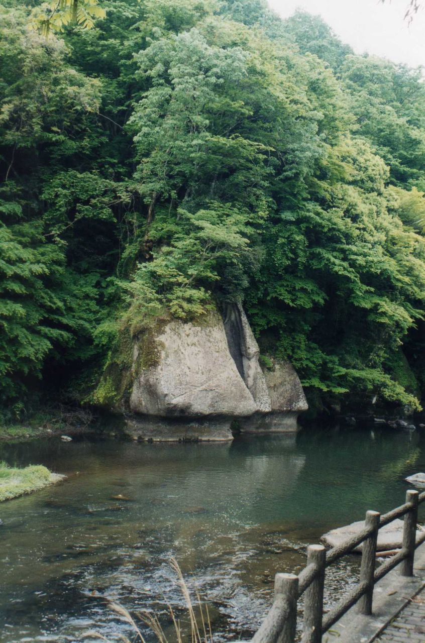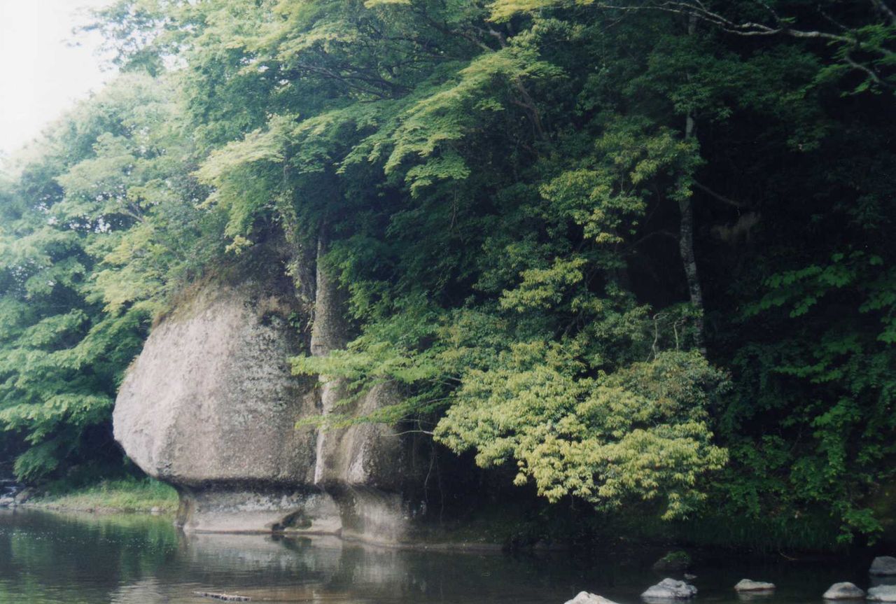 馬頭院から約6㎞、武茂川の対岸に御前岩があった。川は少し上で堰き止められ、穏やかな流れで、沢山な緋鯉が泳ぎ回っている。御前岩は人間が股を開いた格好で、黄門様の指示で手前の岸に腰巻竹を植えさせたという。