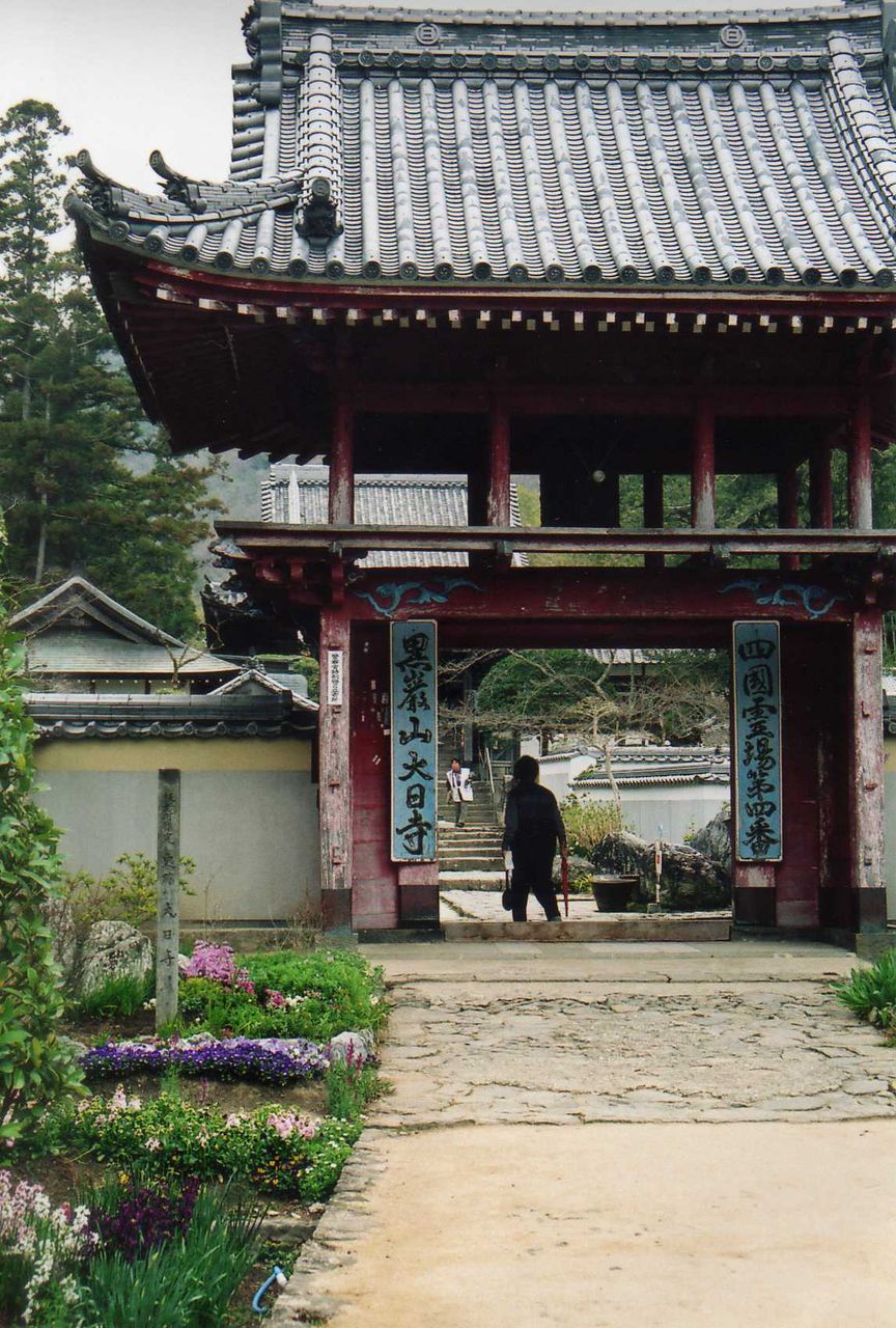 県道34号線を北に行くと、4番札所大日寺に至る。三方を山に囲まれた閑静な場所にある。朱色の山門は少し色あせているが風変わりで、2階に梵鐘がある。正面の本堂にお詣りすると、右へ進んで、太子堂までの回廊に33体の観音様を安置している。知らずにお詣りを飛ばす巡礼者も居るようだが、残念である。境内に白濁した水が湧くようで「はまぐりの水」と呼ばれ、胃腸などの薬として珍重されると案内所に出ているが、それらしい場所を見付けることは出来なかった。ただ、寺内の池は、水が乳白色に濁っており、少し汚れた印象を受けたが、「はまぐりの水」と何らかの関係があるのかも知れない。