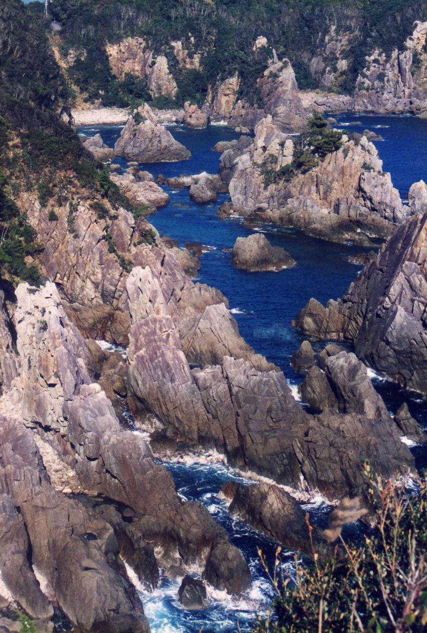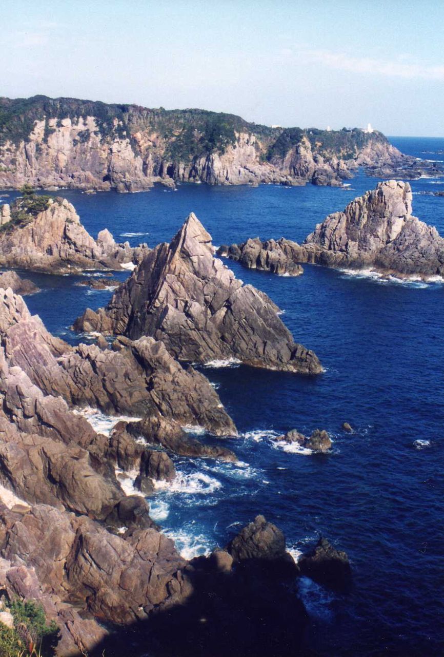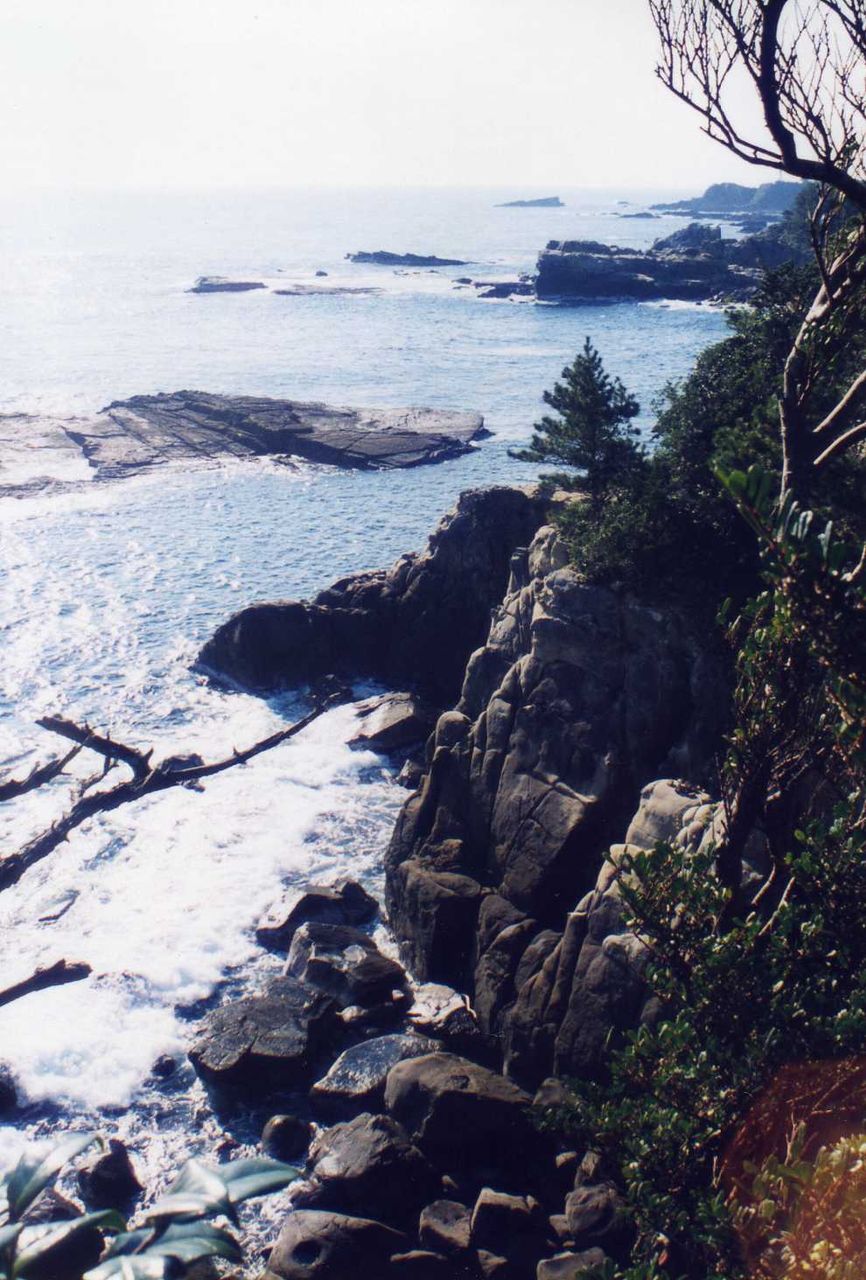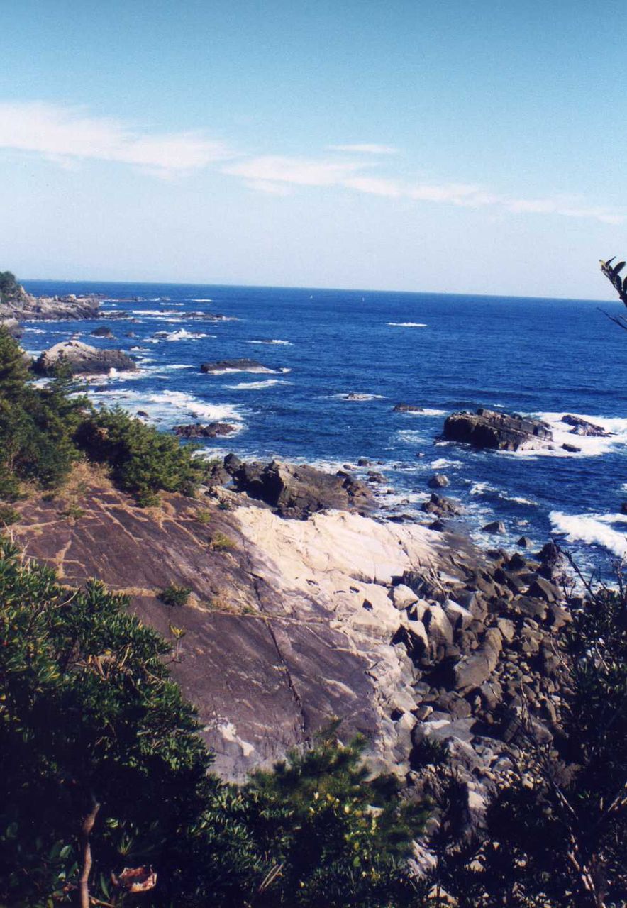 串本より大島行フェリーに乗船。約10分間の乗船であるが、大島には素晴らしい景色があった。鷹巣展望台から見える海金剛である。昔、橋杭岩を見た時も変った岩場だと思ったが、海金剛は素晴らしい海岸美になっている。岩礁と青い海、樫野崎の遠望との見事なコントラストは表現の仕様が無い。(管理人注 橋杭岩については下記ブログを参照にしてください。)