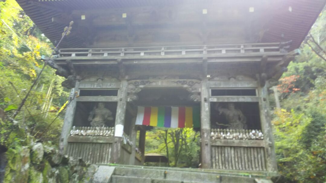 暫く緩やかな階段を登っていくと、建物らしきものが見えたため、思ったより楽勝だったなと思いましたが、それは「仁王門」で、ここからが石段との格闘の始まりです。