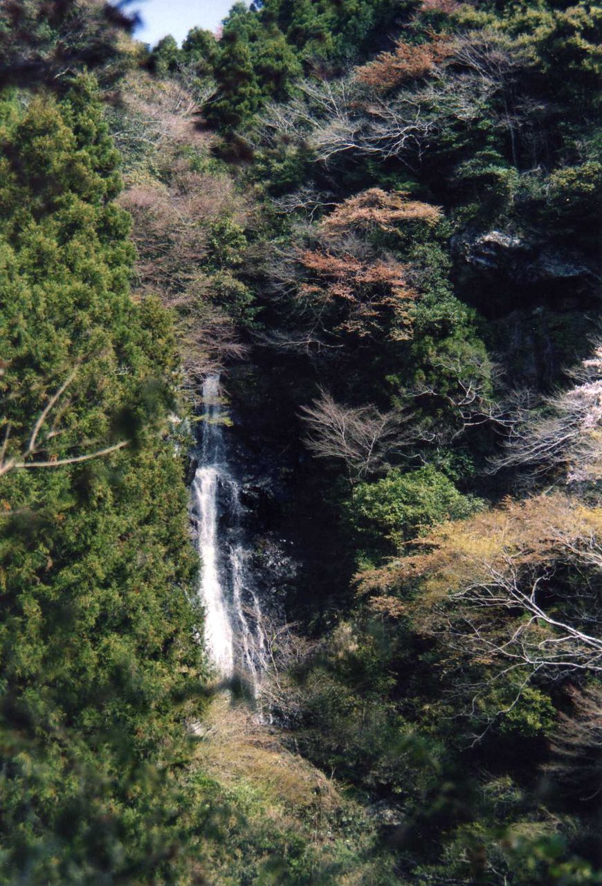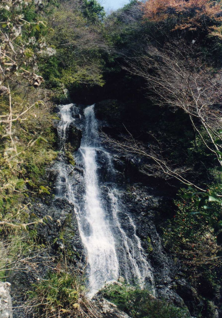 やがて道幅は少し広くなり、土佐山村の平石に到着した。地元の産品直売店があり、今日、第1番目の滝、山姥の滝の所在を聞く。桑尾附近で右折し川沿いの道を約13㎞上流へ。やがて平坦な行き止まりに着いた。前方に高さ30メートルの美しい瀑布が見える。山姥の滝である。伝説によると山姥が付いた家は好運が続き、裕福な生活を送ったとされている。